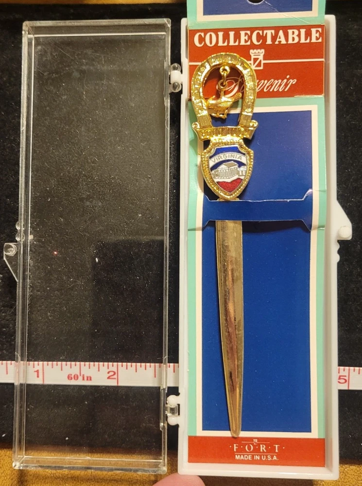 Virginia VA Gold Cardinal Dangle Collectible State Souvenir Envelope Opener box