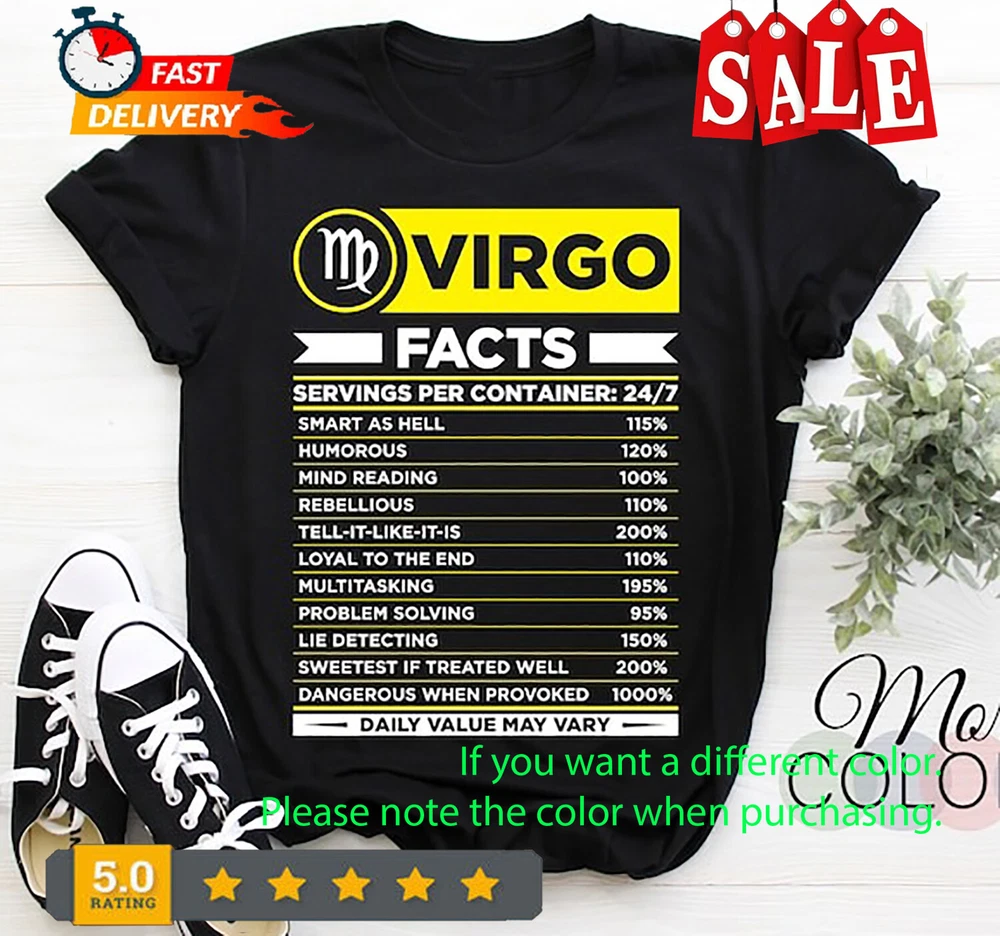 Virgo Traits Horoscope Zodiac Astrological Sign Funny Astrology T-Shirt, Born On August 23 - September 22 Gifts, Birthday Present Dad Mom, If you need any SIZES, DESIGNS, COLORS, please inbox us Product Specification Design & Printed in the USA. Double-needle neck, sleeves and hem; Roomy Unisex Fit 5.3-ounce, Solid colors are 100% cotton. Ash is 99% cotton, 1% poly; Sport Grey is 90% cotton, 10% poly; Dark Heather is 50% cotton, 50% polyester Double-needle neck, sleeves and hem; Roomy Unisex Fit Decoration type: Digital Print . Decoration type: Digital Print . Shipping, Return and Refund Policy On average, merchandise is produced and shipped from our facility 2-4 business days after purchase. Standard Shipping: 5-7 working days for USA. Please contact us if you have any dissatisfaction with the item you buy so that we give you the solution. It is easier for us to handle your issue if you send us the proof like an image. We can replace another within 30 days without fee if the item is defective, damaged, or an error is made on our end. Payment We highly recommend PayPal. However, all major credit cards are accepted Feedback If you satisfy with our item, we will be extremely happy to get your positive feedback. It encourages us so much to produce better items If you received the wrong item that does not match the description or a defective item, please message us with a picture/ image/ screenshot first before leaving us a NEGATIVE FEEDBACK