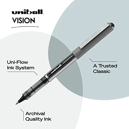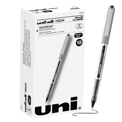 30 Days Return Policy Fast Delivery Trusted seller Vision Rollerball Pens, Black Pens Pack of 12 - 0.7mm Fine Point Medium Black Ink - Teacher Pen, Japanese Pens, Smooth Writing Pens, Journaling Pens, School & Office Supplies Product Description Rollerball Pen: Capture fine details with the superior precision of our roller ball pens; Our fine-point pens come filled with vibrant, smooth-flowing ink that won't fade. Uni Flow Ink System: Equipped with an exclusive ink system, our fine-point pen delivers smooth-flowing ink, allowing you to create concise, flawless documents with vibrant lines. Uni Super Ink: Water- and fade-resistant ink helps you compose long-lasting, high-quality documents you can archive; Our ink pens offer protection against water, fading, and fraud. Quality Construction: Equipped with a visible ink window, our writing pens ensure you don't run out unexpectedly; A convenient clip ensures that your favorite ink pen is always at hand. Visionary Performance: Designed for everyday use, our fine-tip pens combine solid writing, vivid lines, and a classic look enhanced with colorful accents. Shipping Returns Payment Shipping Shipping is FREE to all addresses other than APO/PO boxes in the lower 48 states. All our stock ships from US-based warehouses. Shipped via USPS or UPS (depending on location and package weight) Unless stated otherwise, all orders will ship within 24-72 hours of your payment being processed. Check our feedback to see the great reviews of FAST shipping we offer. Returns As our valued customer, we will do our best to make sure the product you receive arrives to you on time and as expected. If you are not satisfied with your purchase, please contact us within 30 days of receiving your order to process a return. Payment We currently accept payment via eBay managed payments only. Once payment is cleared, we will dispatch your shipment within 1-3 business days. Please refer to the "Shipping" tab for more information regarding shipping speed to your destination.