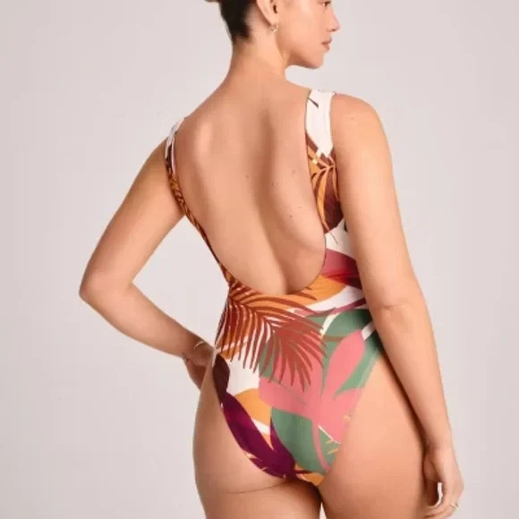 Women's High Shine Plunge Neck Cheeky One Piece Swimsuit - Shade & Shore Brown M