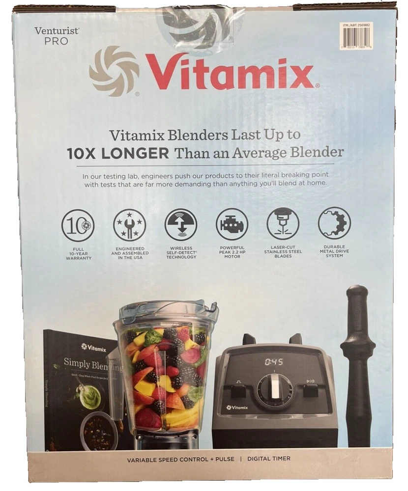 FAST FREE SHIPPING IN USA!!! ORDERS RECEIVED BEFORE 2PM - SAME DAY SHIPMENT!!! AFTER 2PM - NEXT DAY SHIPMENT!!! OUR WAREHOUSE WORKING MO-SAT(9am-9pm) CLEARANCE! Last pieces remaining—future availability currently unknown!!! "Discover our store! Explore a variety of interesting products at great prices. Don’t miss out—check it out now!" Features: Compatible with Vitamix Ascent Series SELF-DETECT Attachments 10 Variable Speeds, Pulse Feature and Digital Timer Includes: Tamper, Recipe Book and 10-Year Full Warranty 64oz Low Profile Container 2.2 Horsepower Motor, 1500 Watts Specifications Brand Vitamix Capacity 64 oz. Container Material Plastic Cord Length 6 ft. Dimensions: W x L x H 8 in. x 10.5 in. x 17 in. Features Dishwasher Safe Features BPA Free Container Model VM0185B Number of Attachments 1 Piece Number of Speed Settings 10