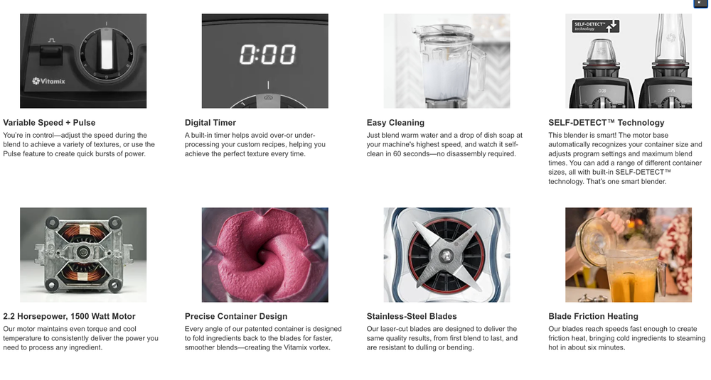 Absolutely love this Vitamix! The self-detect technology is genius—just pop on the container and it adjusts automatically. Blends smoothies, soups, and nut butters effortlessly with perfect texture. Variable speeds and pulse give total control, and the 64oz container is ideal for families. Fast shipping and a 10-year warranty make this a no-brainer. A powerhouse blender worth every penny!