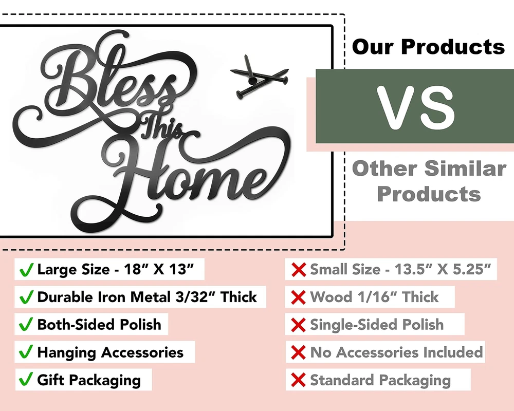Vivegate Bless This Home Wall Decor Black Metal Art – 18”X13” Bless This Home Metal Wall Stencil Decor Entryway Living Room Decoration Signs Product Details Size: 18"X13" Brand: Vivegate UPC: 850025741255 EAN: 0850025741255 MPN: Does not apply Color: Bless This Home Brand: Vivegate Material: Powdered Metal Theme: Ble Recommended Uses For Product: Home Mounting Type: Wall Mount Product Dimensions: 18"L x 13"W Shape: Words Item Weight: 0.66 Pounds Style: Rustic Pre-printed: Bless This Home Item Thickness: 0.09 Inches Included Components: Hanging Accessories UPC: 850025741255 Item Weight: 10.5 ounces Date First Available: June 9, 2021