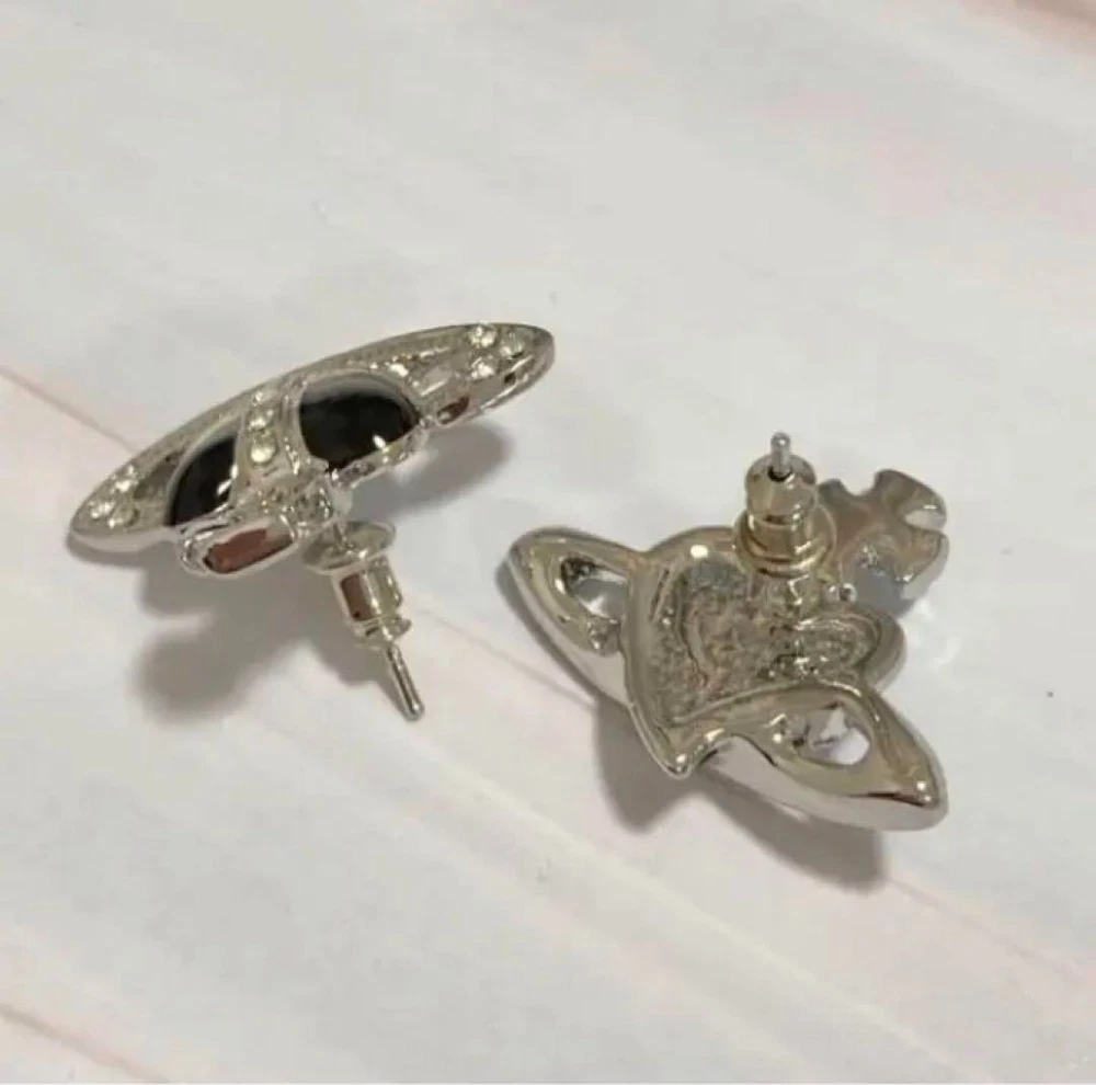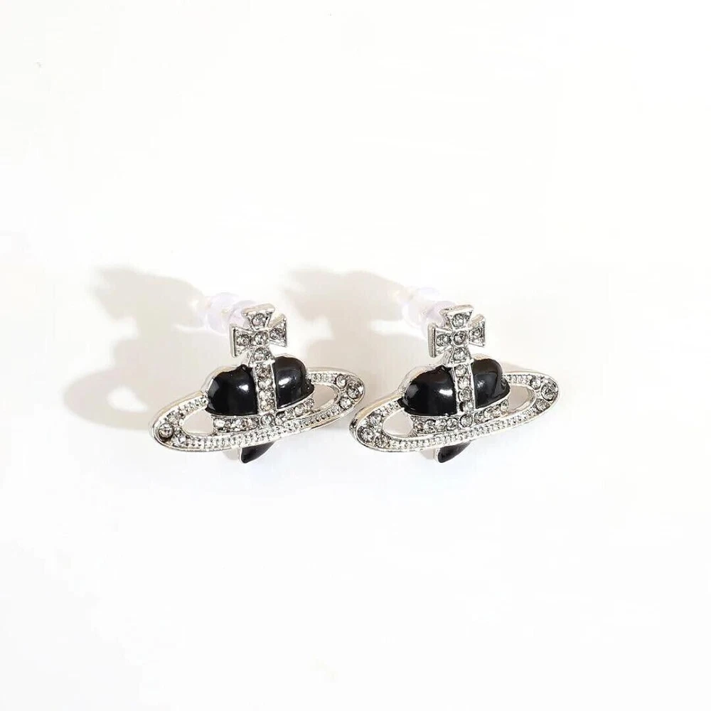 Vivienne Westwood Diamante Black Heart Orb Earrings Silver Outlet authentic