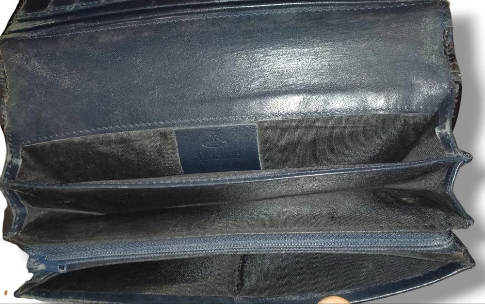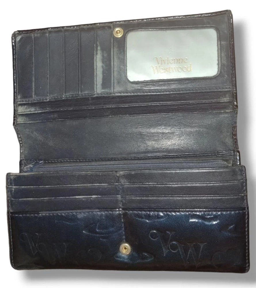 Vivienne Westwood Enamel Long Wallet Orb genuine leather embossed navy