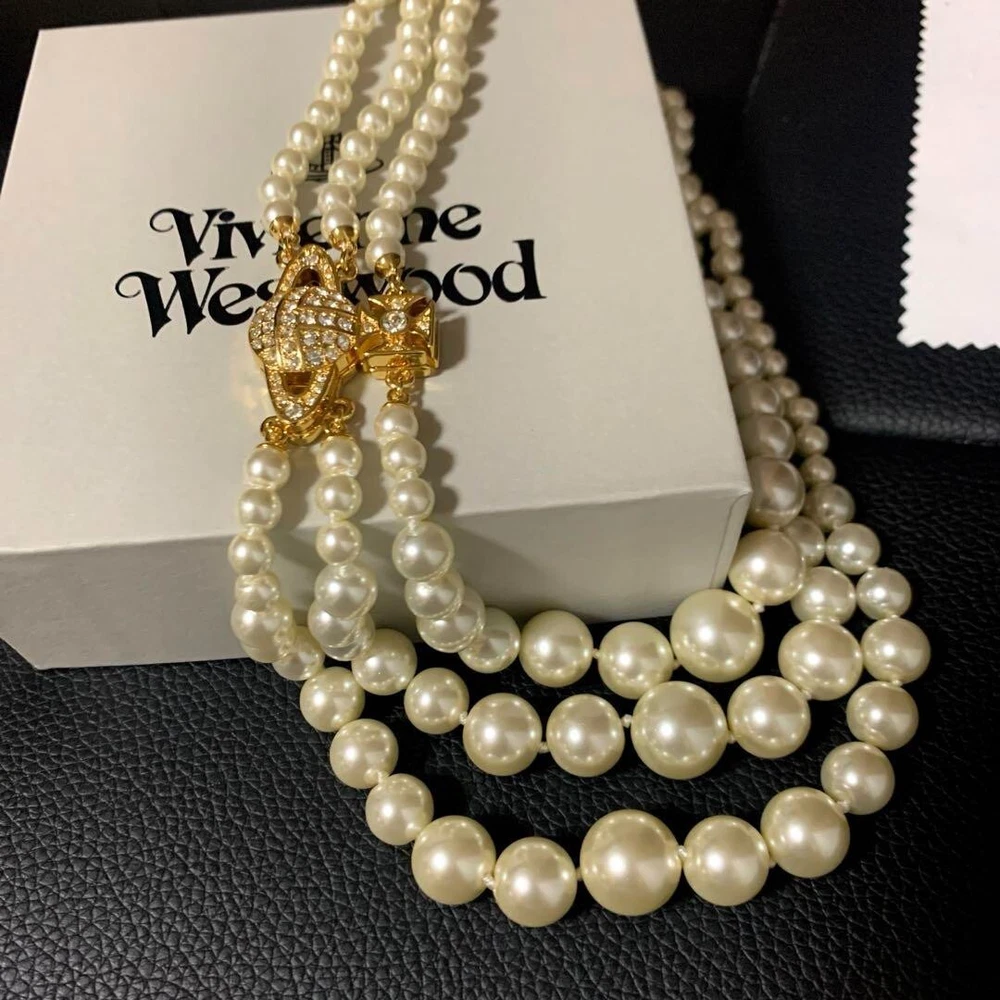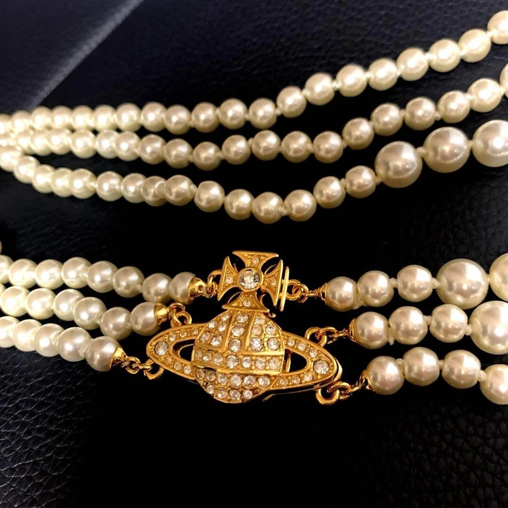 Closure: Please see photos Type: Necklace Earrings Material: Metal Color: Gold / White Brand: Vivienne Westwood MPN: Jewelry, Accessories, NA Style: GRAZIELLA 3-strand pearl UPC: NA gtin13: NA