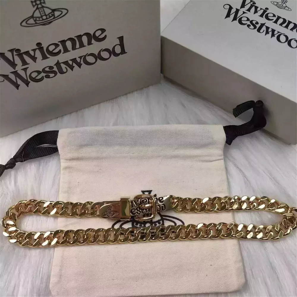 Authentic Vivienne Westwood Belt Gold Necklace Chocker With Gift Box Dimensions: choker length is around 40cm Comes with Vivienne Westwood jewellery box, gift bag, dust bag, polishing cloth and purchase card.
