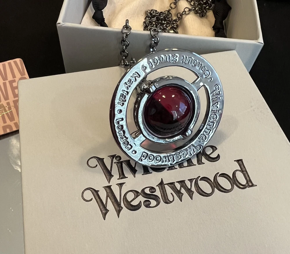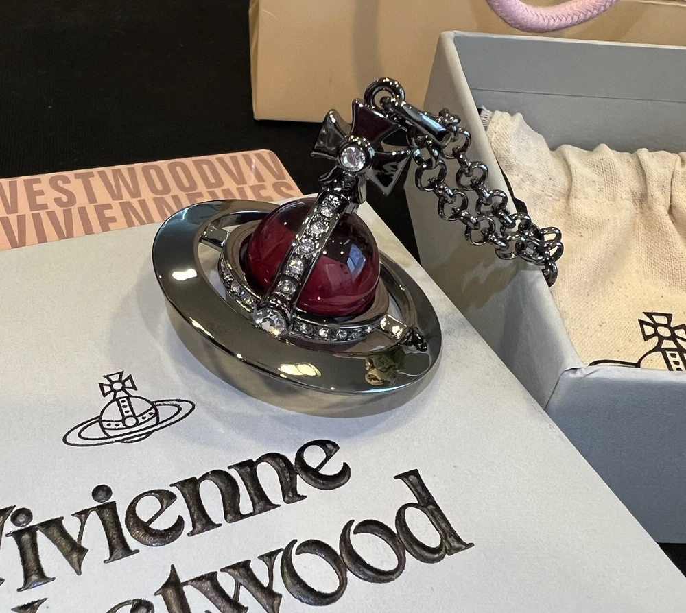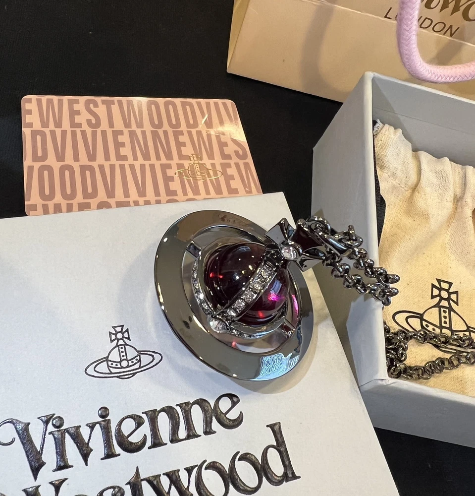 Vivienne Westwood Gunmetal Globe Orb Necklace with Purple Crystal