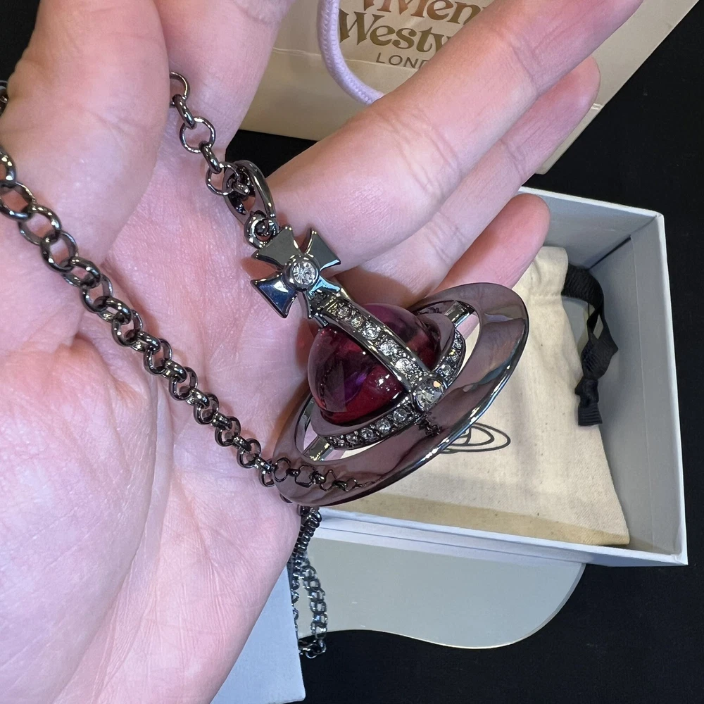 HomeVivienne Westwood Gunmetal Globe Orb Necklace with Purple Crystal