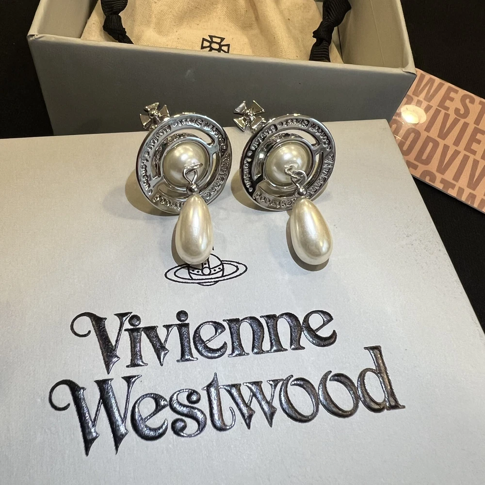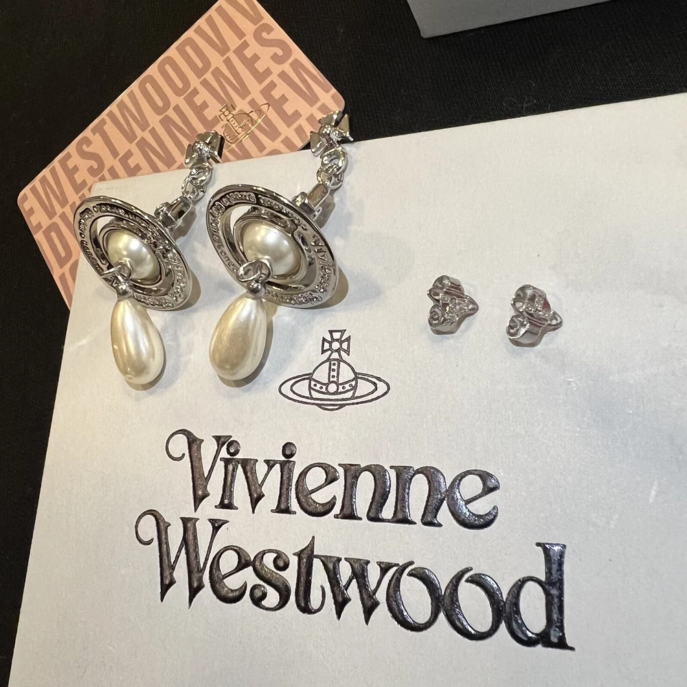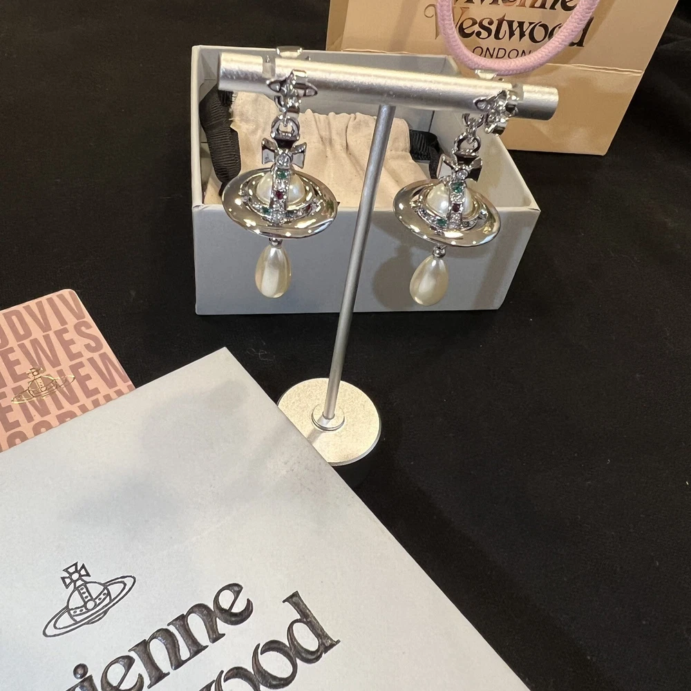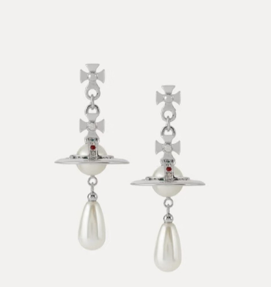 Vivienne Westwood Nana Drop Pearl Earrings Silver Orb with Box 302