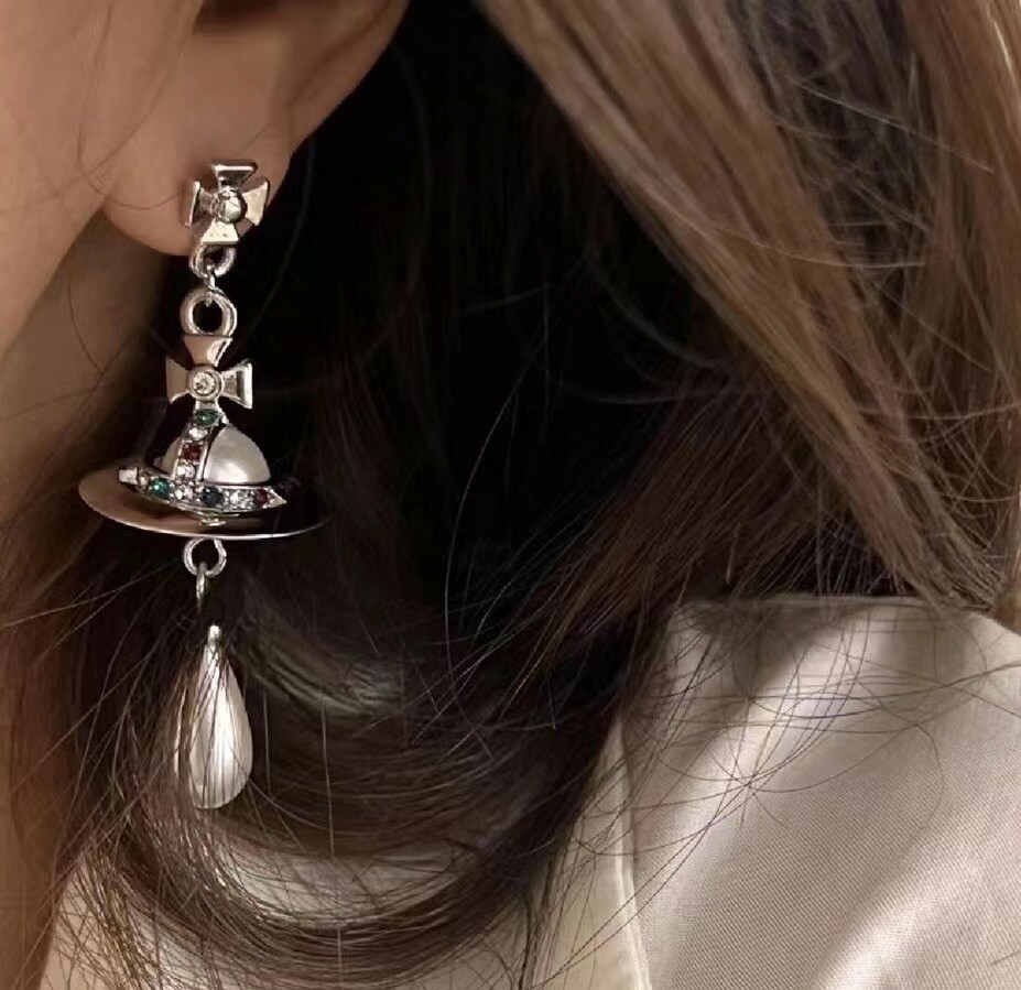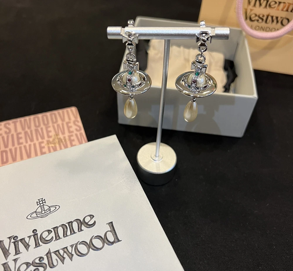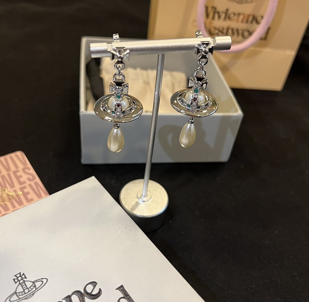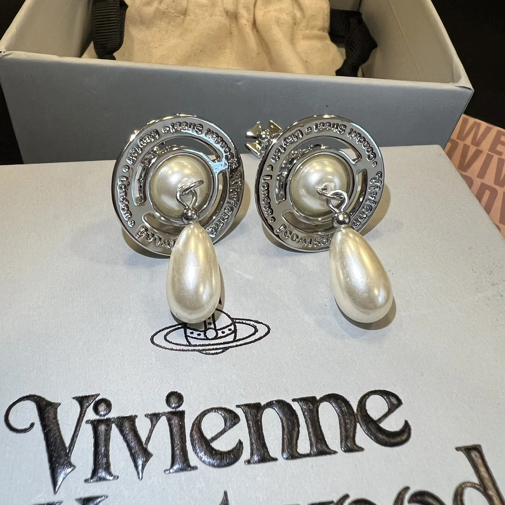Vivienne Westwood Nana Drop Pearl Earrings Silver Orb with Box 302