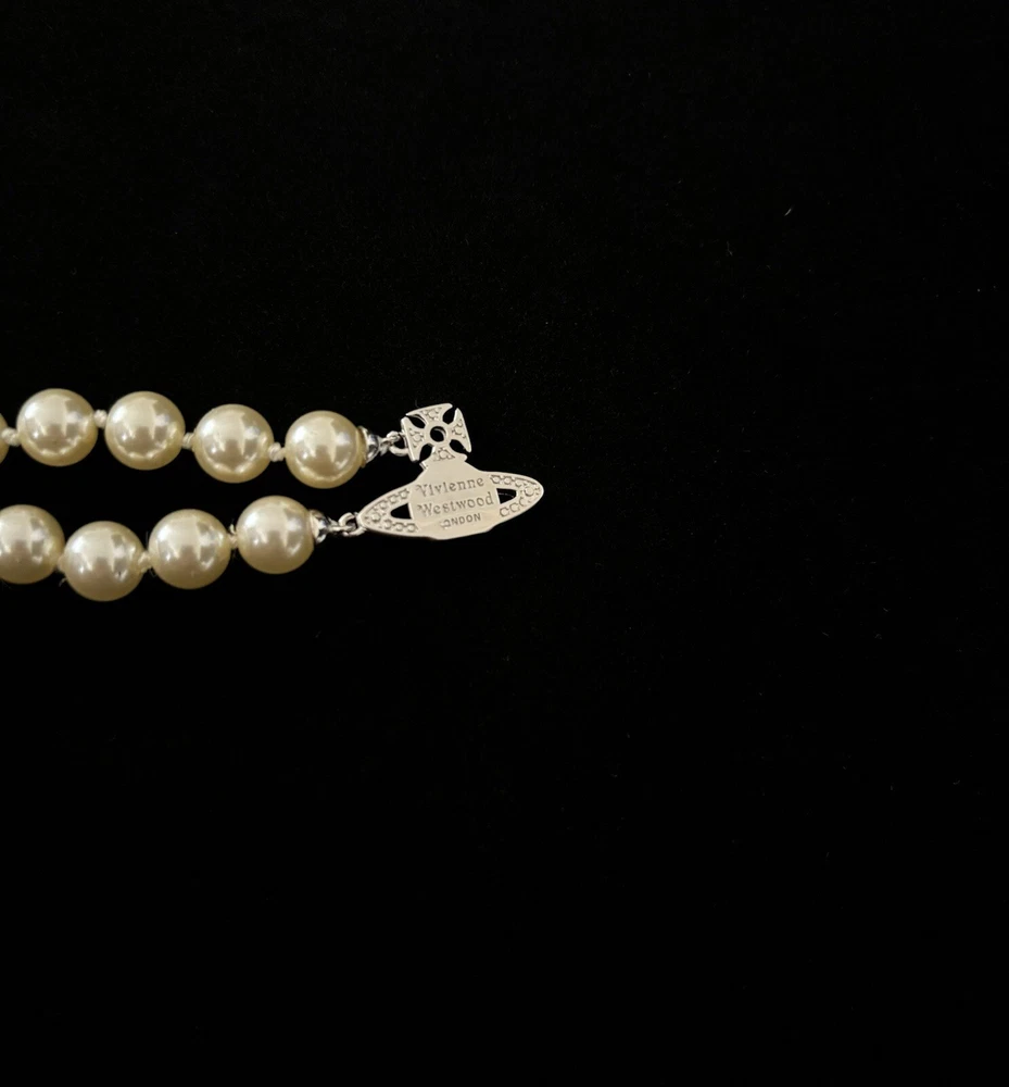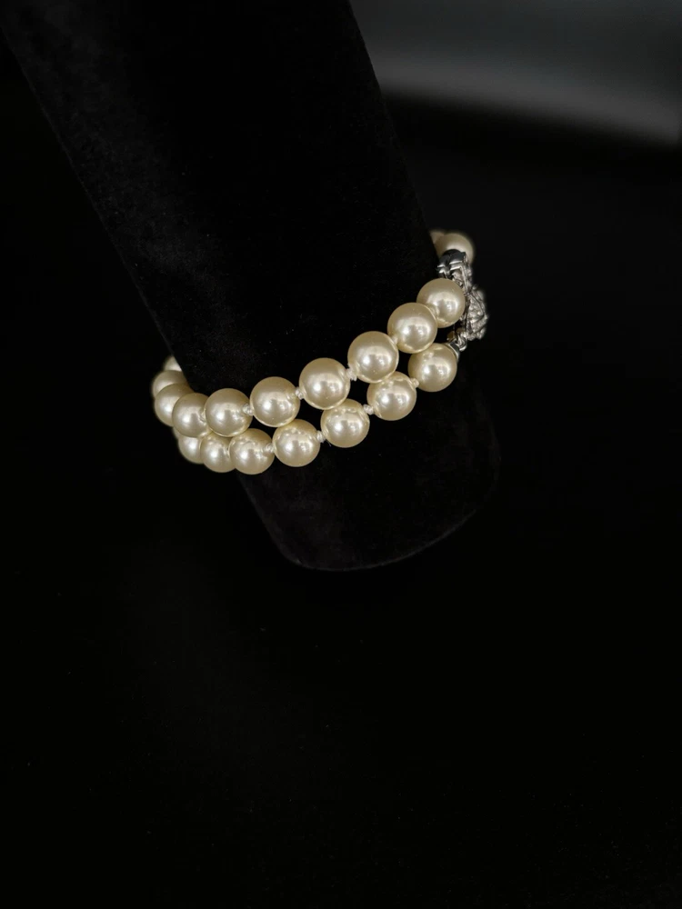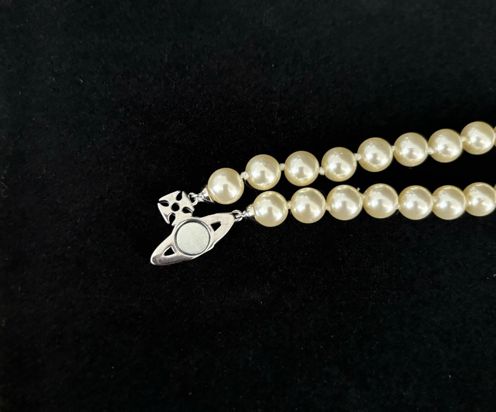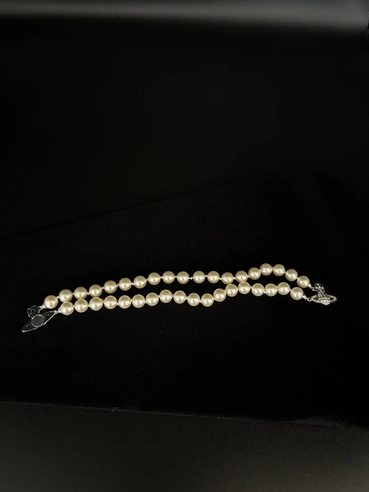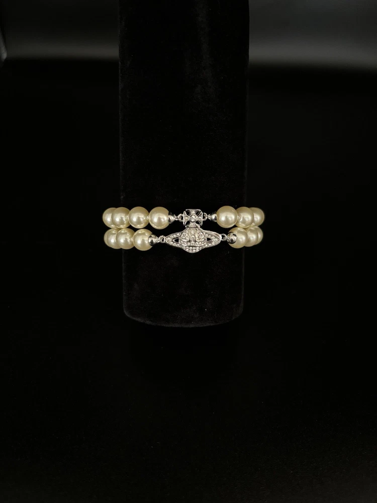 Vivienne Westwood Nana GRAZIELLA Two Row Pearl Pave Orb Bracelet SilverTone #372 AUTHENTIC PREOWNED EXCELLENT CONDITION No dust bag or box available SHIPS OUT WITHIN 24HRS!!