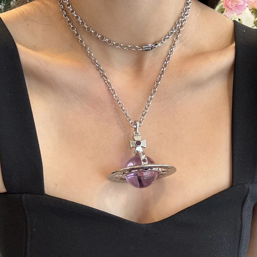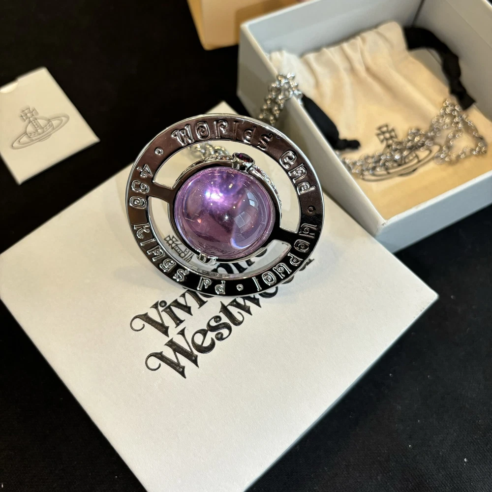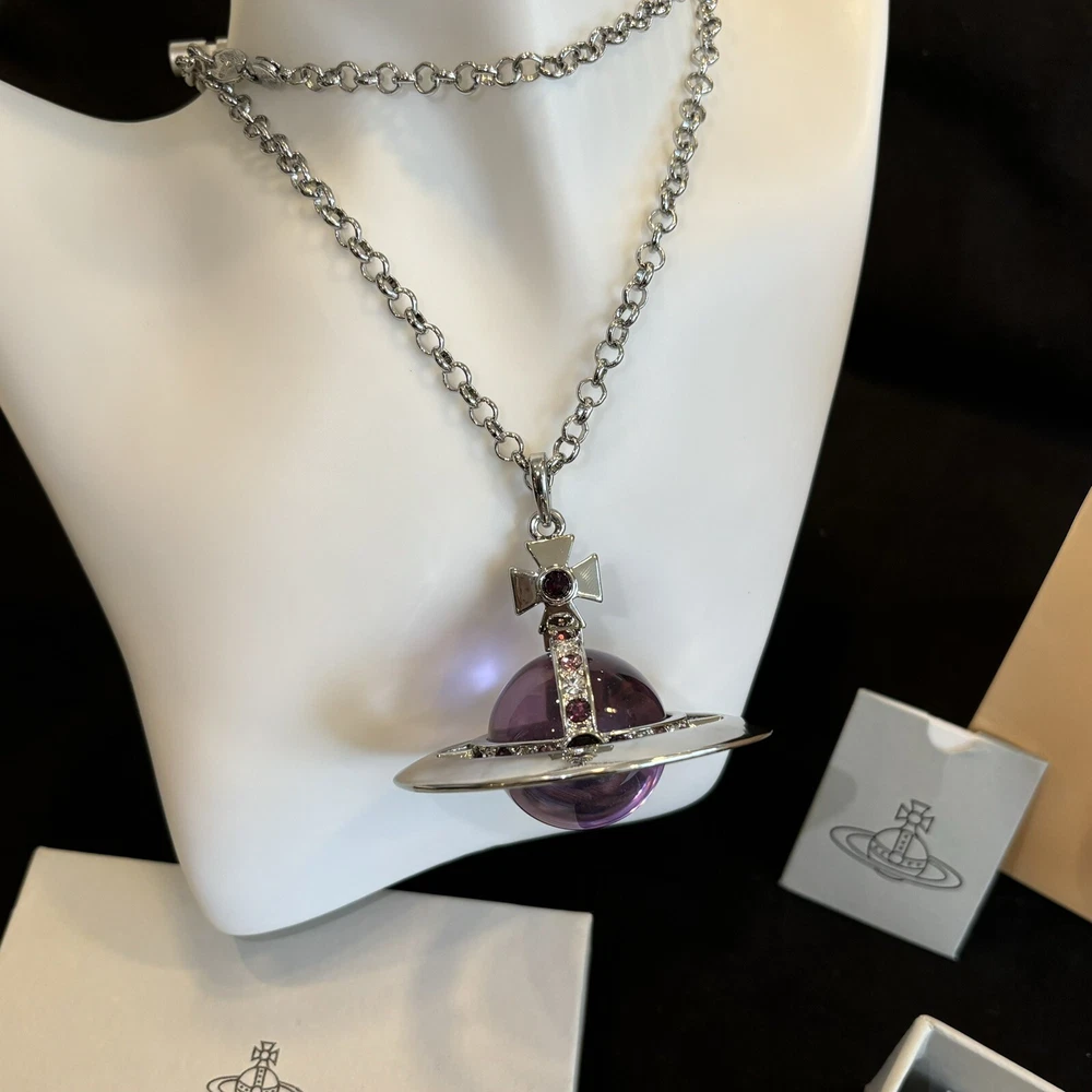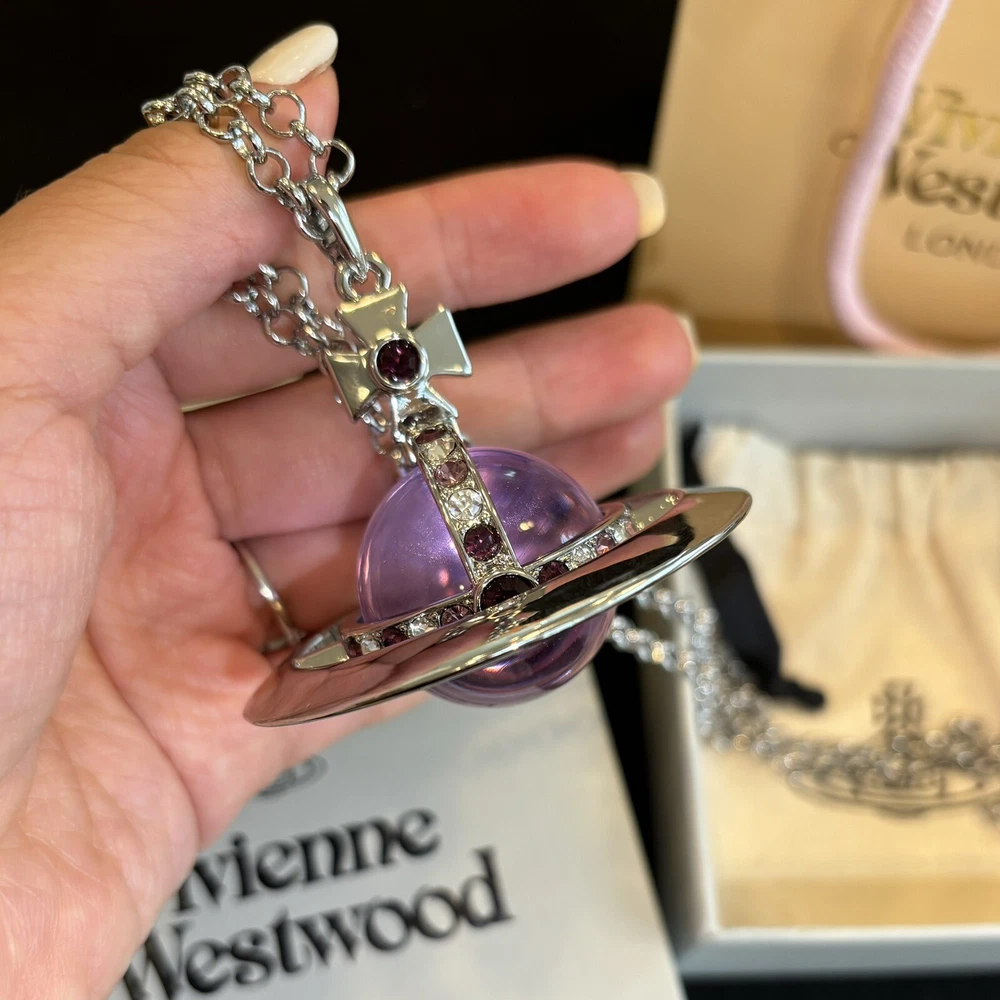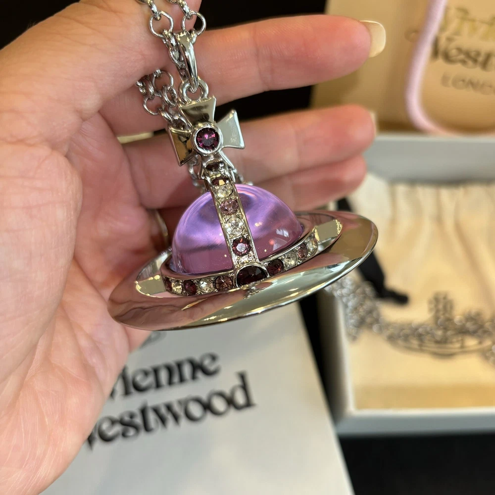 Vivienne Westwood Nana World Ends Giant orb Purple Crystal Necklace With Box