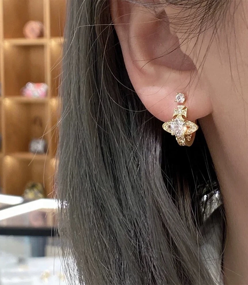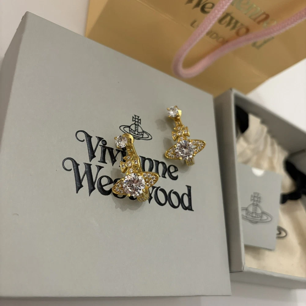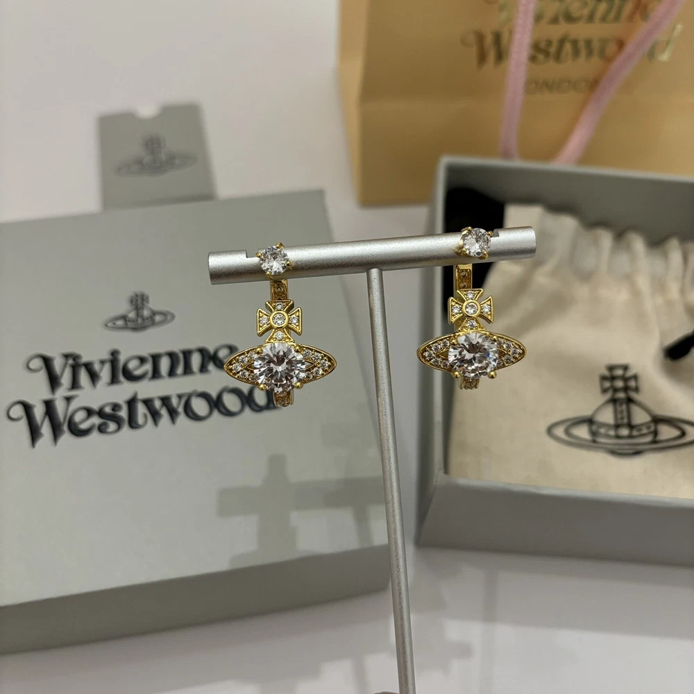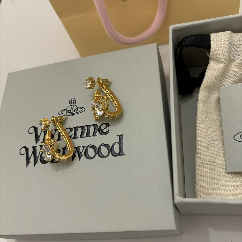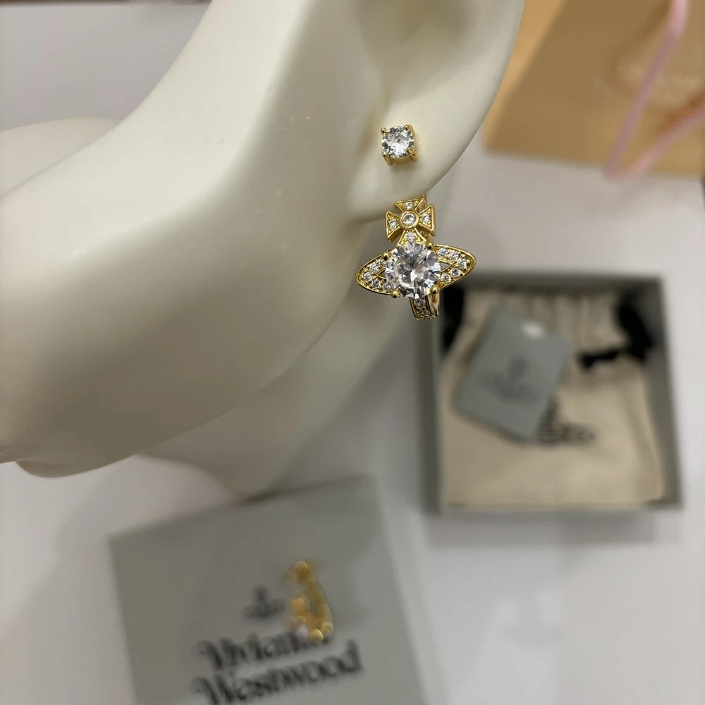 Vivienne Westwood Orb Crystal Earrings Gold Tone With box Christmas Gift