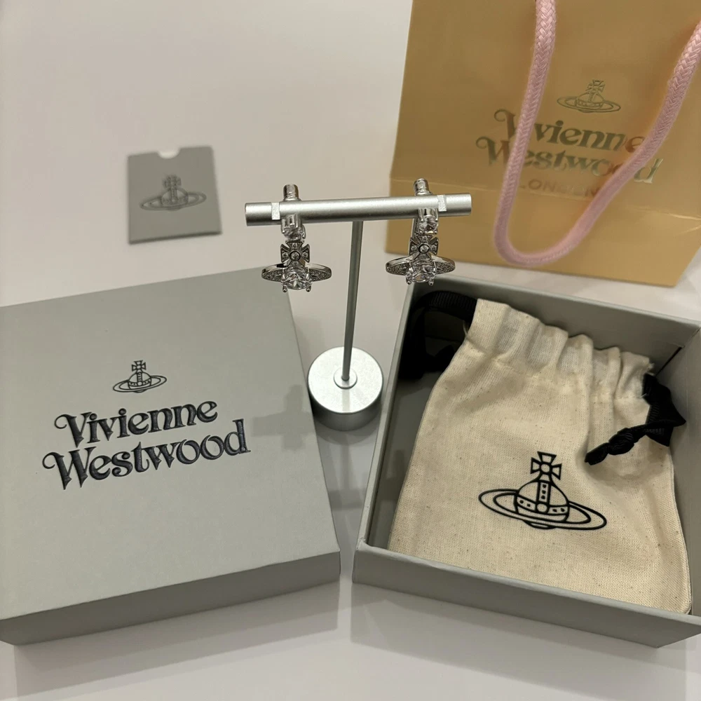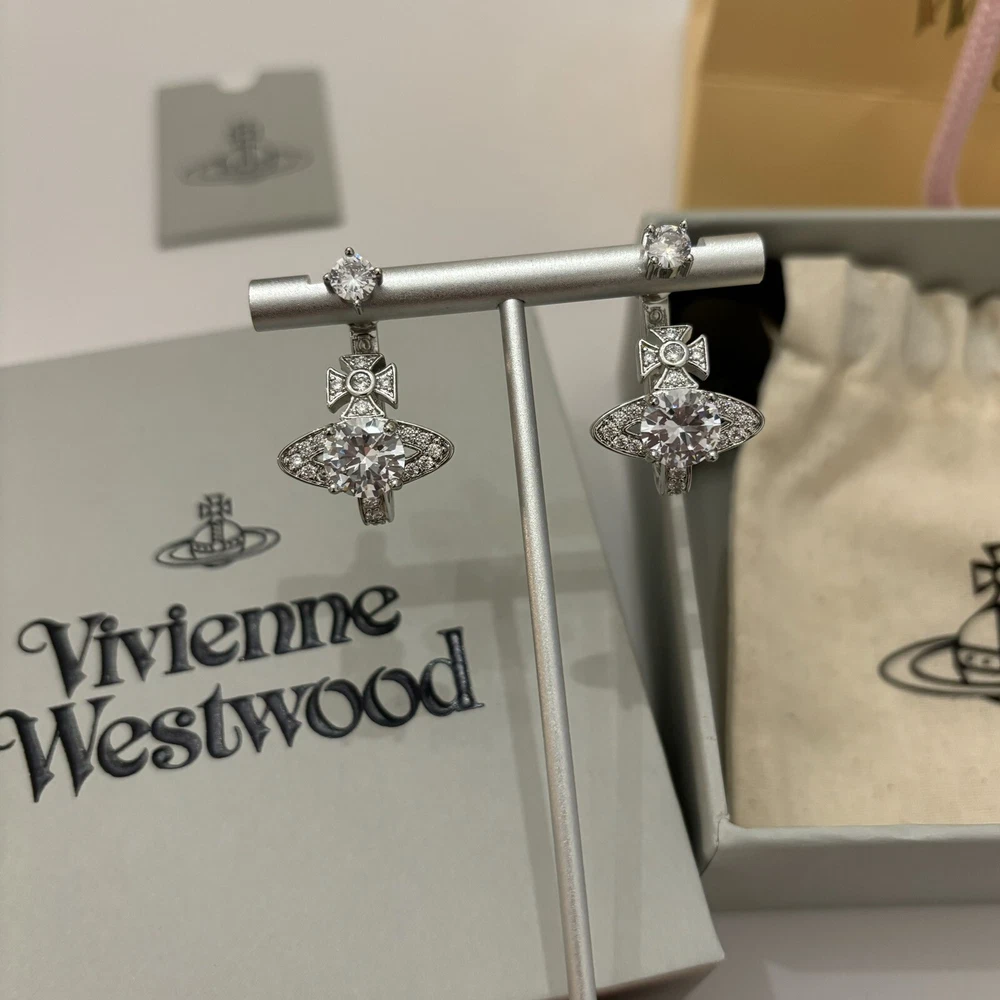 Vivienne Westwood Orb Crystal Earrings Silver Color With box Christmas Gift