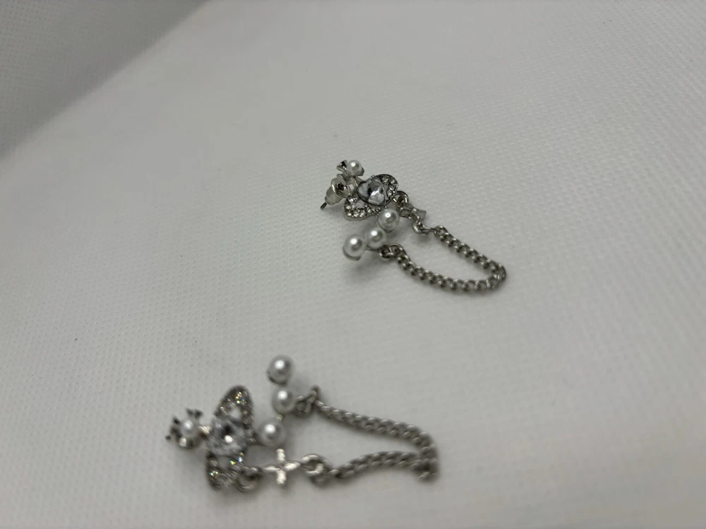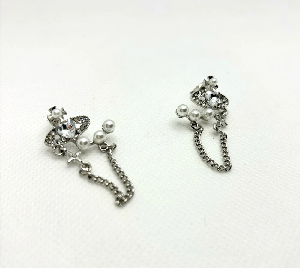 Brand: Vivienne Westwood Secondary Stone: Pearl Type: Earrings Color: Silver Metal: Silver Style: Stud Closure: Secure Lock Back Main Stone Color: White Main Stone: Crystal