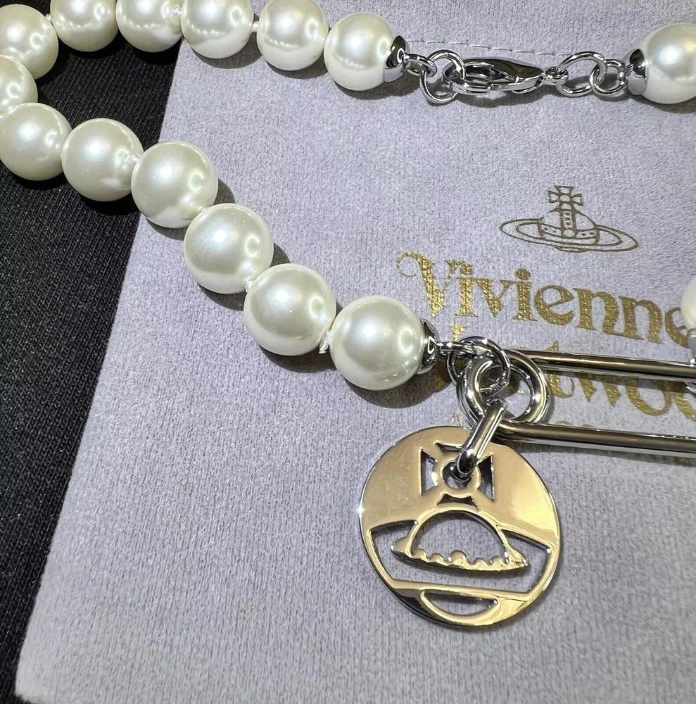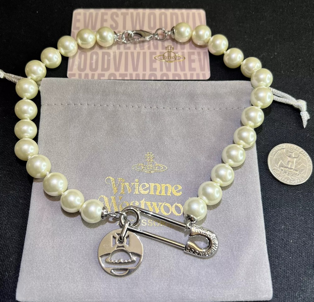 $ 47.52Vivienne Westwood Silver Tone Pearl Safety Pin Necklace with Gift Box