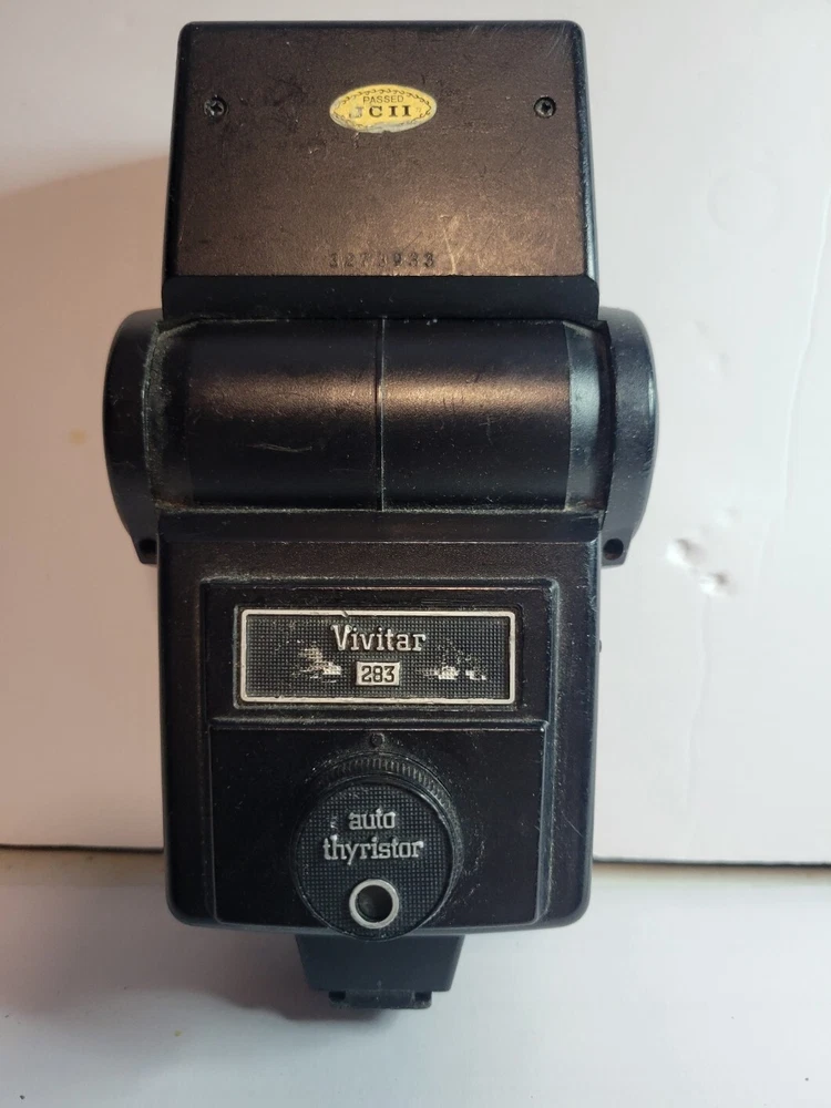 Product Information The Vivitar 283, which was first manufactured in 1972, has been described as the Volkswagen "Bug" of flash units. It was manufactured for years and remained remarkably unchanged during its entire time in production. This flash has four automatic ranges, which allows for automatic operation with a choice of four aperture settings with your camera. With a guide number of 110, it can pack quite a punch for its compact size. The head of the Vivitar 283 tilts up to 90 degrees to allow for easy bounce lighting that will eliminate harsh shadows in your photography. The thyristor design conserves the four AA batteries that provide power and allows the 283 to recycle more quickly. Pointed directly at the subject, the 283 covers lenses up to 35 mm.An AC adapter and a number of third-party battery packs are available for the 283. The batteries slide into a small magazine for quick and easy changes, and extra battery holders are readily available for photographers to pre-load additional sets for heavy or extended shooting. The 283 operates effectively on alkaline and rechargeable batteries, so you can maintain a steady power supply no matter where you're shooting.The sensor that controls the choice of four apertures can be removed and used remotely with a special extension cord, and this sensor can also be replaced with a separate variable output module, allowing you to control the manual output. This can be useful if you're using the 283 as part of a setup with remote triggers and multiple flashes. When used in auto mode, the 283 has an operating range of 3 to 43 feet, and you'll be able to adjust the aperture selection for greater control of the depth of field in your photo.The extension cord has a hot shoe mount and also a PC cord outlet on the side. The PC cord can plug directly into the flash, and the cords are available in various lengths. The use of a device like the Wein safe sync is recommended unless you test the individual flash for high voltage. This unit was designed in the days when cameras were largely mechanical, and triggering voltage wasn't an issue whereas today's digital cameras are more sensitive to a high triggering voltage. Most 283's these days are used in multi-light setups.You may want to consider upgrading the mount if you plan to use the Vivitar 283 mounted on a light stand because it is relatively easy to replace and has multiple options for a strong metal one. Some of those replacement metal hot shoes also include a built-in optical slave, which is convenient if you want to use the 283 in a multi-flash arrangement.