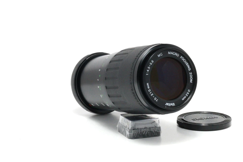Vivitar 70-210mm f/5.6 MC Macro Zoom Lens with Cap – Vintage Telephoto This Vivitar 70-210mm f/5.6 MC Macro Zoom Lens is a fantastic vintage telephoto lens, ideal for photography enthusiasts and collectors. The lens features multi-coated optics (MC) for improved image quality with reduced glare and enhanced contrast. It is in good working condition and includes a compatible Sigma lens cap for protection. Key Features: ✔ 70-210mm telephoto zoom – Perfect for portraits, wildlife, and macro photography. ✔ Multi-Coated (MC) optics – Improves image quality by reducing flare and enhancing contrast. ✔ Smooth manual focus and zoom operation. ✔ Includes a Sigma lens cap for added protection. ✔ FD mount – Compatible with older Canon film cameras. For use with Canon digital DSLRs , you’ll need an FD to EF mount adapter (sold separately). This lens is a great addition to any vintage camera setup, with minor cosmetic wear but excellent functionality. Whether you’re using it on an older Canon film camera or adapting it for modern Canon digital cameras, it offers a solid, manual focus zoom option.