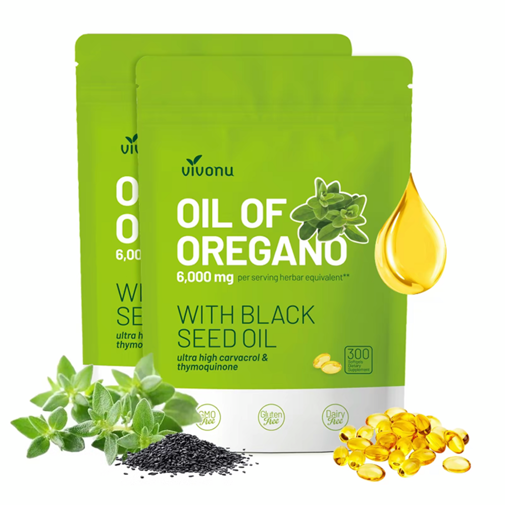 About this item [Oregano Oil Capsules Organic]Each serving of oil of oregano capsules contains oil of oregano with black seed oil. The main ingredients are a natural organic mixture of oil of oregano with black seed oil, including Carvacol and Thymoquinone,support digestive health and help maintain balance in the body contribute to overall wellness [Premium Oil of Oregano Softgels]Our Oregano Oil Softgels are natural, pure and carefully formulated, free of GMOs, soy, dairy, and gluten, unlike many other supplement capsules, ensuring the purity and safety of each capsule without harmful additives [Oregano Oil Extract]Elevate your wellness routine with our fresh Oil of Oregano and Black Seed Oil complex,harnessing the combined strengths of oregano oil and black seed oil to promote balance in the body, promote healthy digestion and respiratory function, potentially providing relief for related concerns.a premium quality supplement that promotes seasonal immune health and harnesses the power of nature's finest gifts [300 Pcs Per Bag]Oil of oregano capsules are easy to swallow, 2 capsules per day, very convenient.Each pack of vivonu oil of oregano with black seed oil contains 300 pills, far more than cheap products on the market, enough to support overall wellness for 150 days [Easy to Absorb]Elevate your health habits with our oregano oil capsules organic, from 20:1 fresh oregano oil extract, to enhance absorption and maximize its benefits(Note: if the capsules are stuck, please shake them slightly to separate, which will not affect product quality and use.Please contact us for any questions)