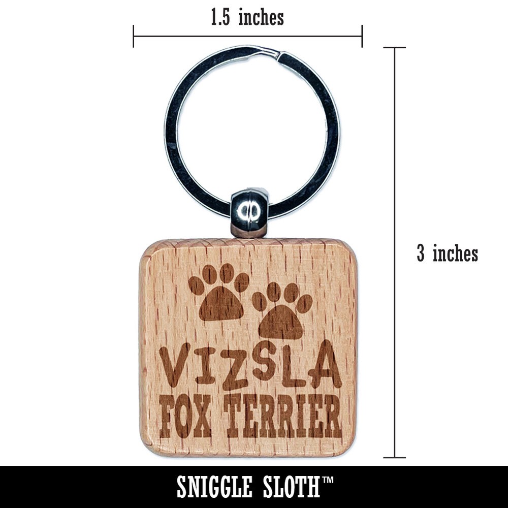 Wire Hair Fox Terrier Dog Paw Prints Fun Text Engraved Wood Square Keychain
