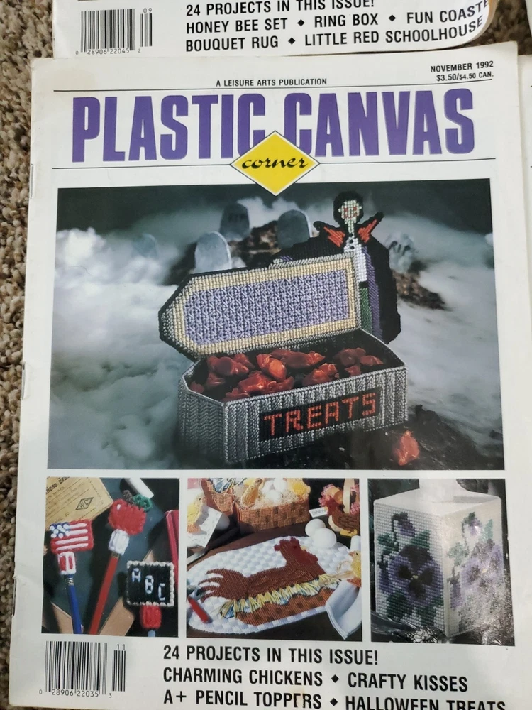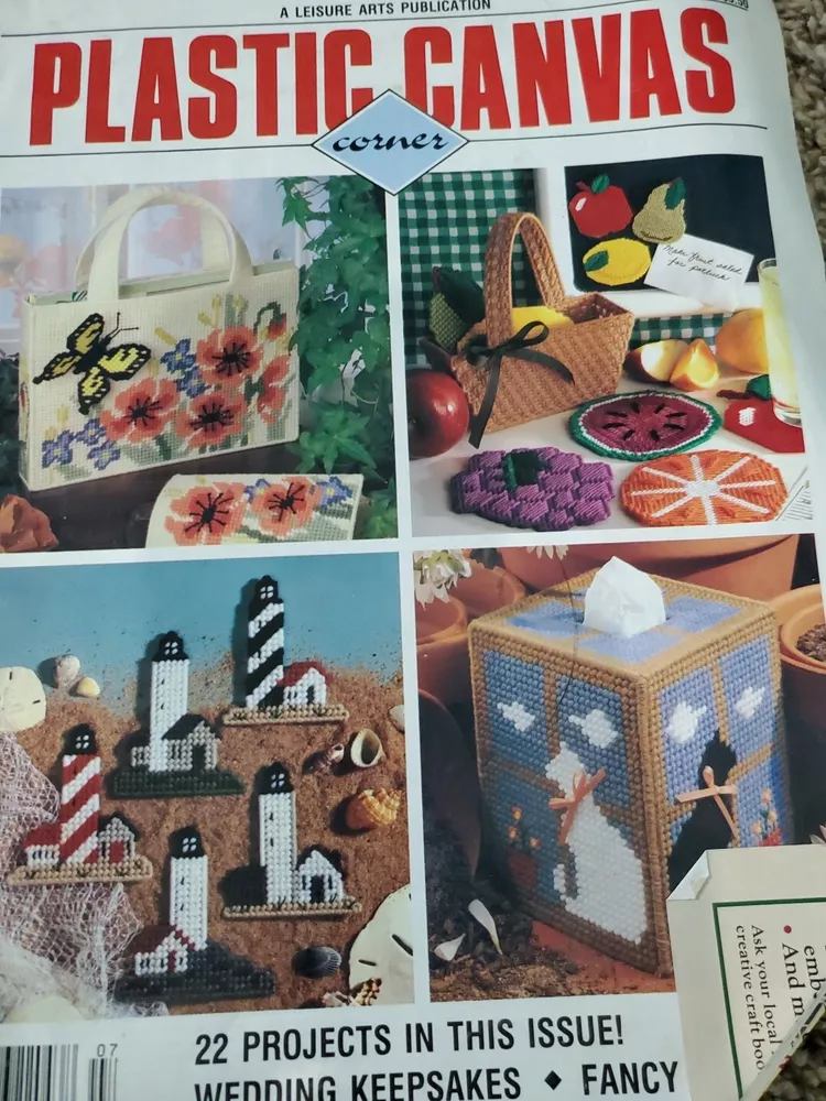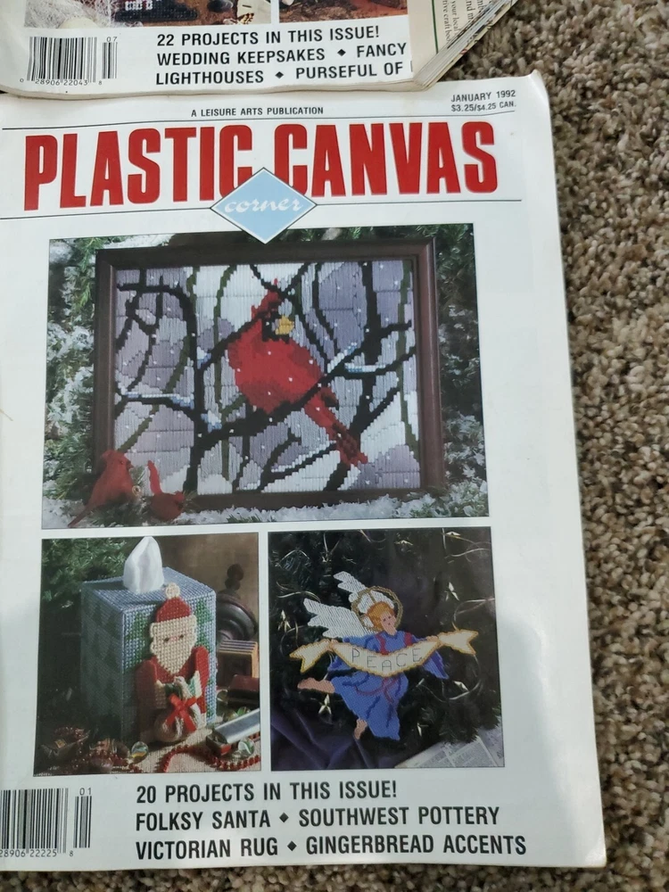 This lot of vintage needlework crafts features four plastic canvas patterns for Christmas and the holiday season. The designs include festive images such as Santa Claus and various animals and insects, making them perfect for any crafter interested in creating holiday-themed cross stitch patterns. The patterns are suitable for mixed brands of needlework materials and are sure to add a touch of charm and whimsy to any project.
