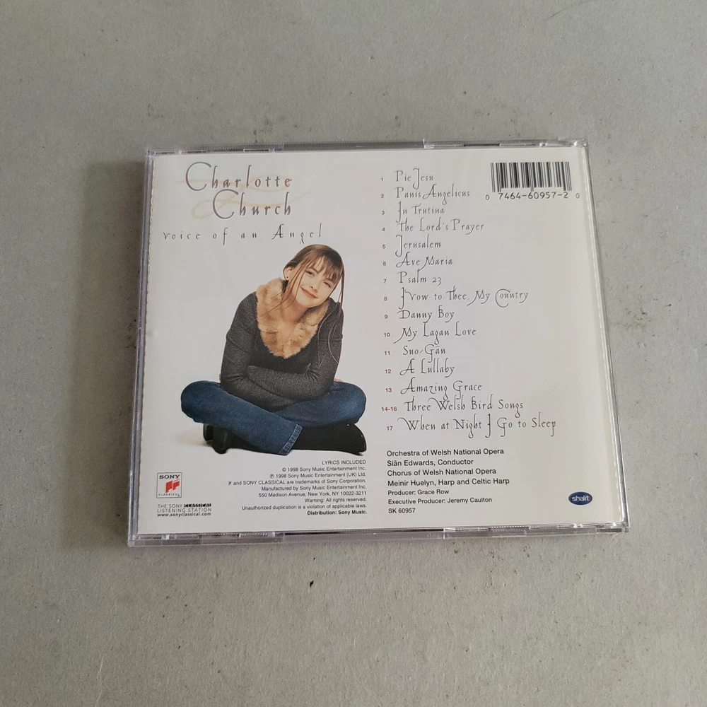 Instrument:Voicegtin13:0074646095720Release Year:1998Format:CDUPC:0074646095720Type:AlbumArtist:Charlotte ChurchGenre:PopRecord Label:Sony ClassicalRelease Title:Voice of an Angel