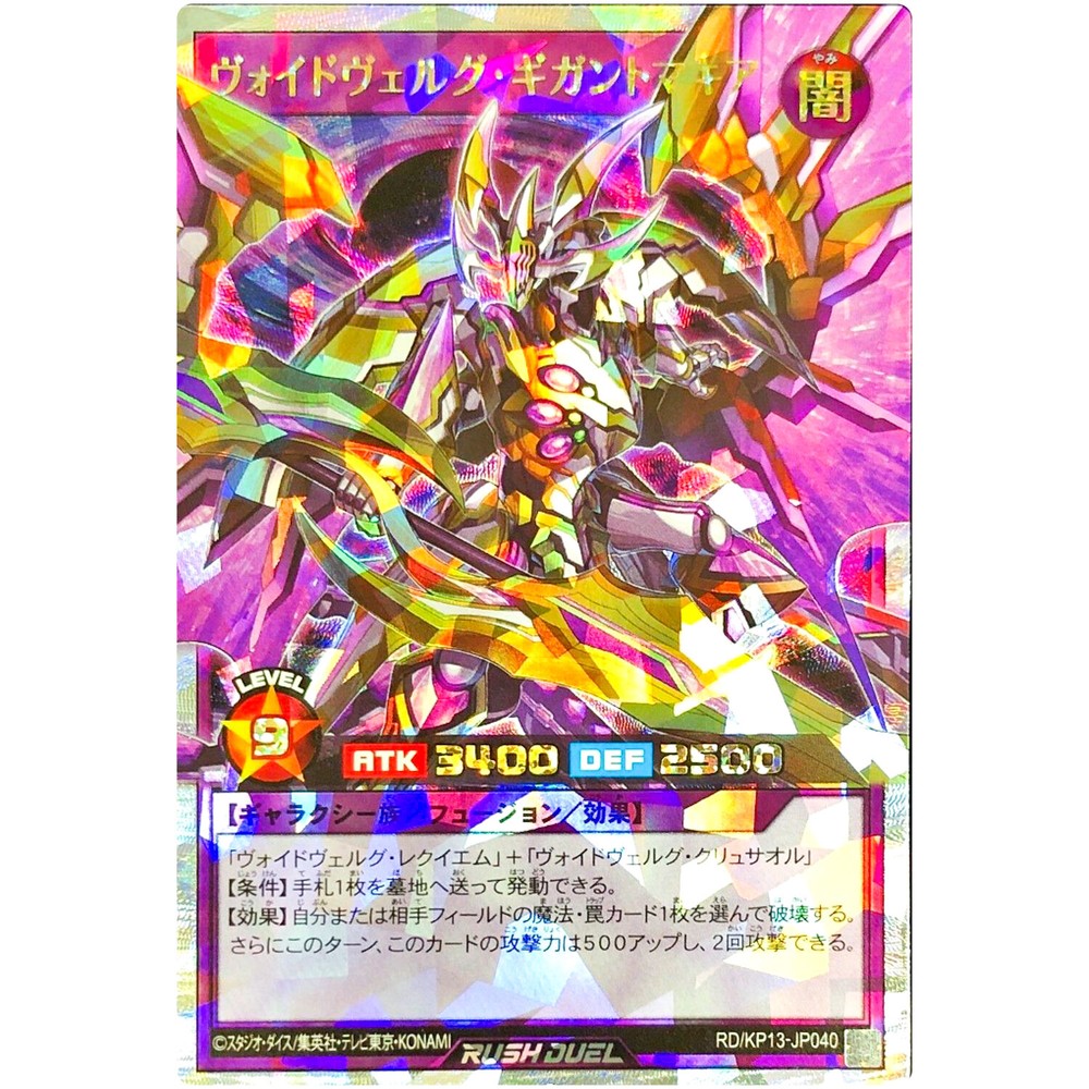 Item Discription RD/KP13-JP040 Voidvelgr Gigantomachia Front Back Card Name : Voidvelgr Gigantomachia Character : Voidvelgr Gigantomachia Rarity : Over Rush Rare Card Number : RD/KP13-JP040 Set : Oblivion of the Flash Type : Effect Fusion Monster Language : Japanese Card Condition : Near Mint Purchased cards will be clipped with cardboard, waterproofed, and shipped without any scratches or folds. Cards over $20 will be packed even tighter with a loader for each card. Shipping Policy Free shipping worldwide. Free shipping does not include tracking. There is an additional cost of US $4 for tracking. If you purchase cards totaling US $30 or more, you will receive a free tracking number. All of the products will be shipped from Japan. Economy Shipping Air mail ( no tracking ) Free Shipping Delivery time : About 2-4 weeks Standard Shipping Air mail ( with tracking ) US $4 Delivery time : About 2-4 weeks Expedited Shipping FedEx or EMS or DHL ( with tracking ) US $24 Delivery time : About 1-2 weeks Payment Policy We accept all major credit cards and Paypal payments. Return Policy We hope you will love your purchase, houever if you need to return it, we have a 30 day return policy. International Buyers Import duties, taxes, and charges are not included in the item price or shipping cost. These charges are the buyerʼs responsibility. Please check with your countryʼs customs office to determine what these additional costs will be prior to bidding or buying. If the cancellation is due to the buyer, wewill charge a fee. If there is a remote charge for your address, we will charge you for additional shipping. We are honored to receive the eBay Japan Awards 2022! I am thrilled to share that my store has won the eBay Japan Awards 2022 ! This amazing accomplishment wouldnʼt have been possible without our wonderful customers. A heartfelt thank you for your ongoing support. We will continue to improve our services, offering a diverse selection of items and top-notch customer care Thank you for helping us achieve this prestigous recognition, and we look forward to serving you in the future! Copyright ©️ 2023 Animart Japan