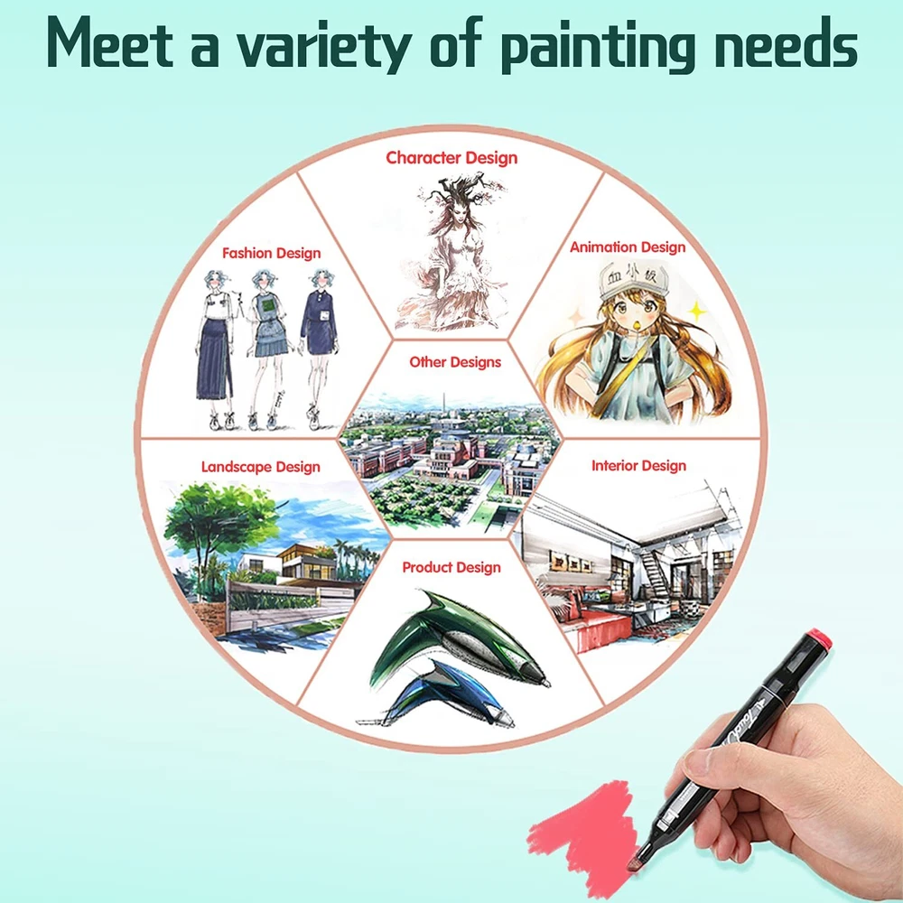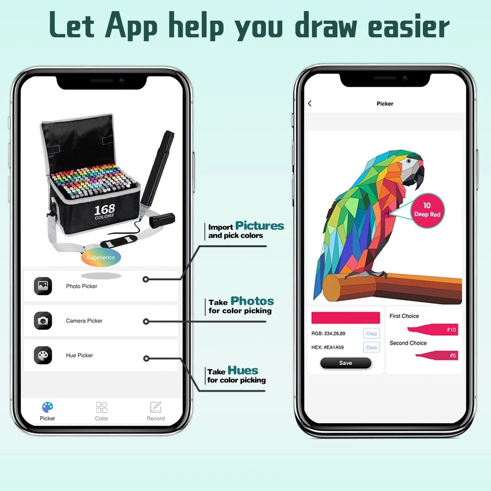 Reliable Free App-Kids and adult will love the App. Three modes help choose the fittest alcohol-based markers for your artworks from alcohol markers set, helps you to draw like a pro artist.APP works without Internet and applicable for IOS & Android. Perfect Christmas gift for girls and kids. Creative Gift- 168 colors marker set come with a durable zipper carry bag for storing and easy travel. Bottom organizers keep pens up straight in order. Markers for adulting coloring are ideal gifts for girls, artists, hobbyists, beginners. A great gift idea for Christmas,birthday and a new semester etc. Extensive Selection of Colors-168 colors alcohol markers dual tips permanent offer flexibility when illustrating, graphic designing or writing. Broad chisel of dual tip alcohol markers (1-7mm) is ideal for shading, fine tip (1 mm) for precise details. smooth and consistent ink flow with well-blending capability, which is great for manga, architectural rendering, card making etc. Fast to Identify Precise Colors- You only need to point crosshair to the desired color, RBG and hex values of color will show, easier to find out appointed alcohol markers from well-organized consecutive color-coded caps and enjoy the efficient drawing fun. Package List-Buy one gets 173. Including168 markers + 1 blender markers+2 pcs random bonus colors markers+ 1 color card and 1 marker case. Your satisfaction is our priority one, feel free to contact us for a replacement or refund when defective marker pens received.