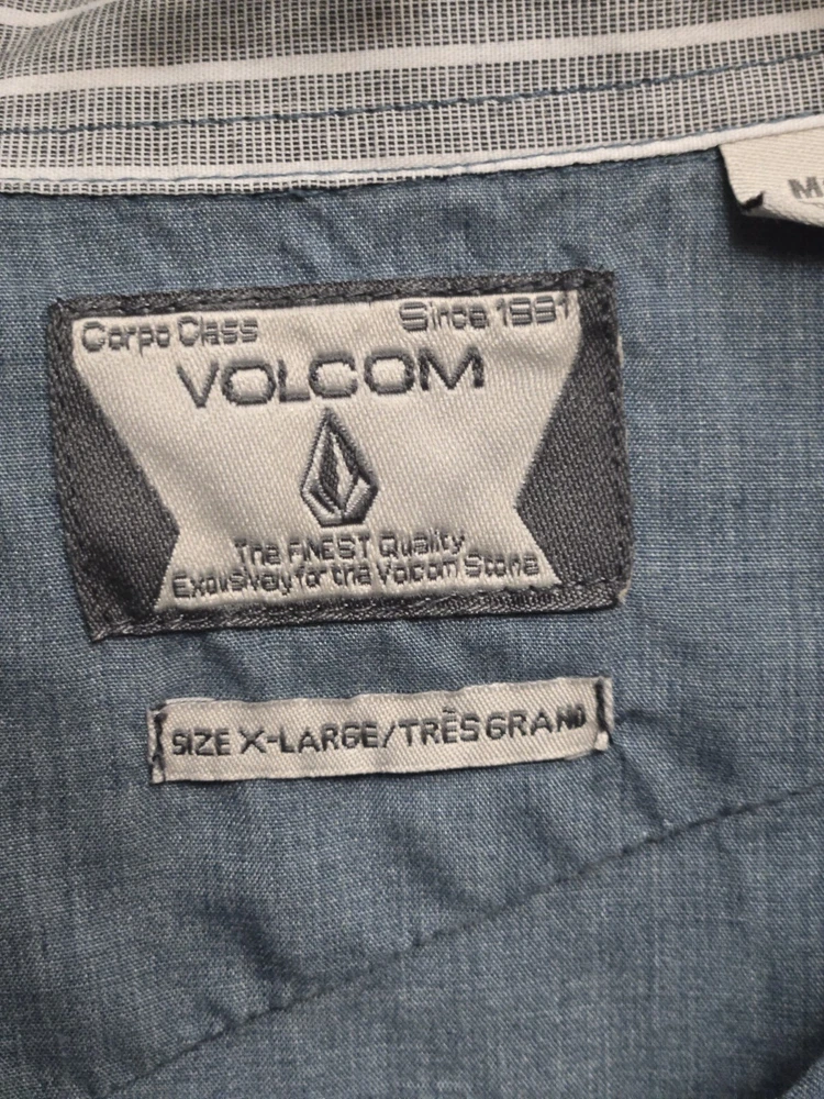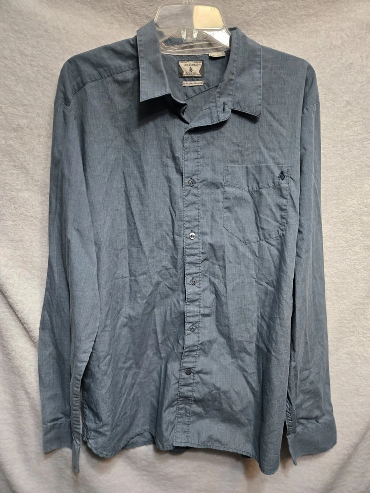 Crafted for comfort and style, the Volcom Classic Fit Men’s XL Long Sleeve Button Down Shirt is a versatile addition to any wardrobe. Embrace the simplicity of its solid gray/blue color, perfect for coordinating with a wide range of outfits. The shirt's cotton material ensures breathability and ease of care, making it an ideal choice for both casual and more polished occasions. The shirt features a regular fit that offers ample room for movement without sacrificing a sleek silhouette, complemented by a smart button-down collar and an embroidered accent for a touch of distinction. The long sleeves make it suitable for varied climates and seasonal transitions, while the button closure ensures a secure and flattering fit. Washed according to manufacturer's instructions.