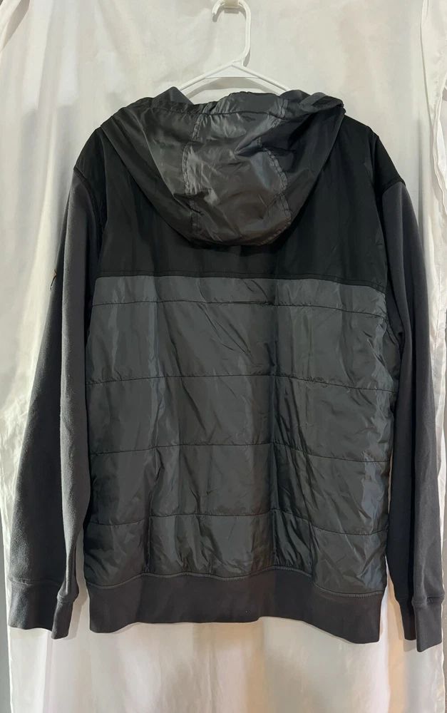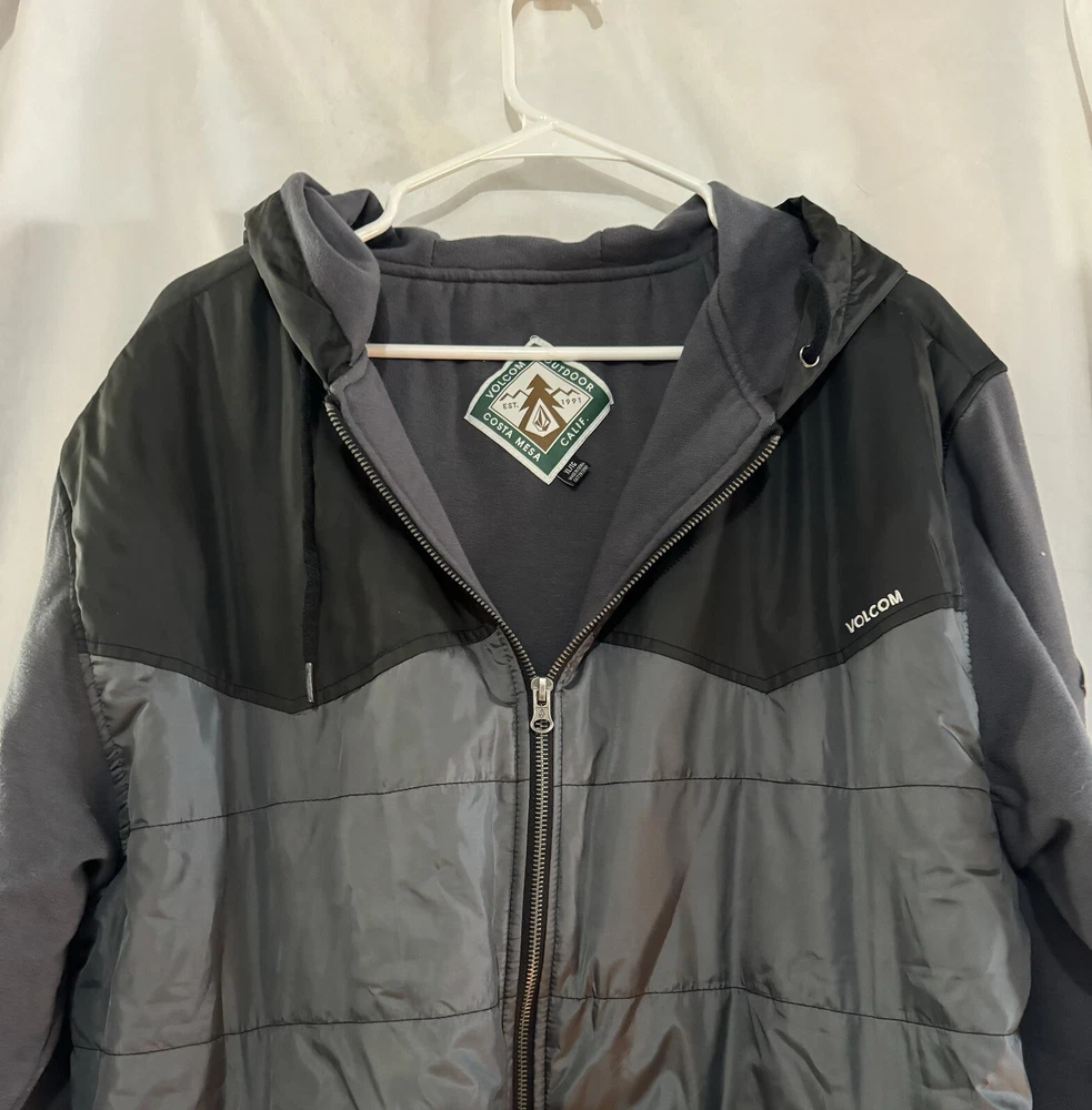 In EXCELLENT like new condition!! This stylish jacket from Volcom is a must-have for any fashion-savvy man. It features a black and gray color scheme that is both modern and classic, and is made from high-quality polyester to ensure lasting durability. The jacket is designed to fit a size XL and is perfect for men who want to make a statement with their outfit. Whether you're dressing up for a night out or just running errands, this jacket is the perfect addition to any wardrobe.