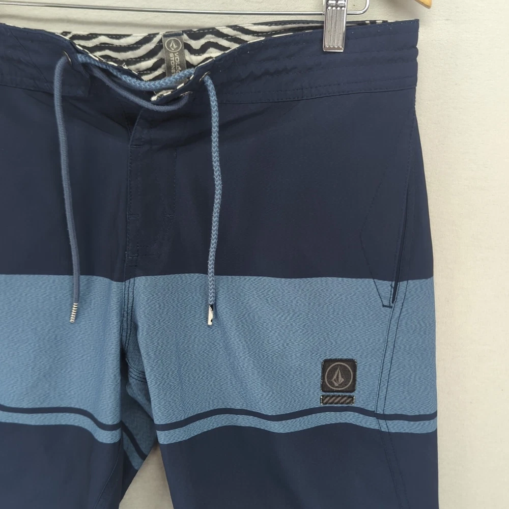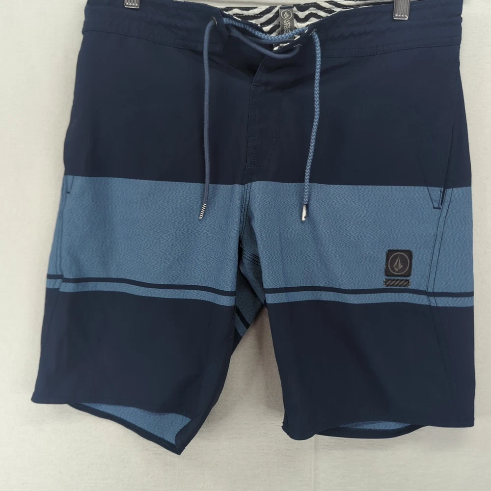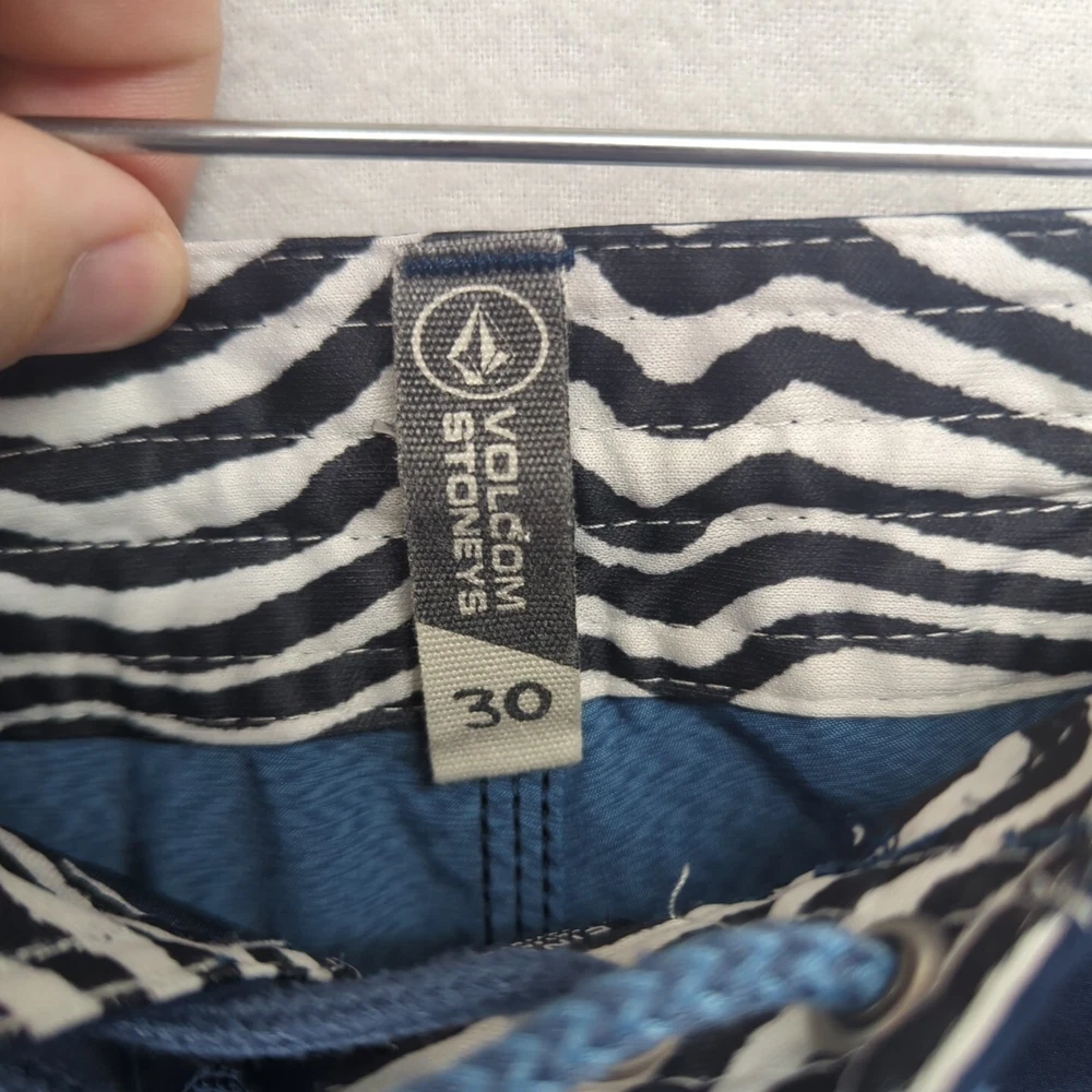 Volcom Stone Board Short Swim Trunks Blue Colour Block Stoney's Size 30 Mens Waist: 40cm approx. Waist to Hem: 51cm approx. * PLEASE NOTE THE SIZING PROVIDED. THESE ARE APPROXIMATE MEASUREMENTS. Disclaimer:product colour may slightly vary due to photographic lighting sources or your monitor settings