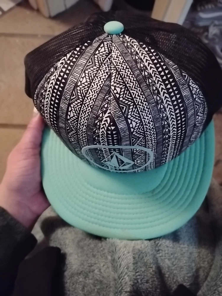 Volcom Trucker Hat Adjustable Snapback One Size Genuine BEAUTIFUL COLORS Turquoise, black, & white Volcom logo One Size fits MOST Adjustable snapback π A few microscopic defects, I think they will come out if washed. Never been washed, worn once. Offers/questions/measurement requests are welcome π