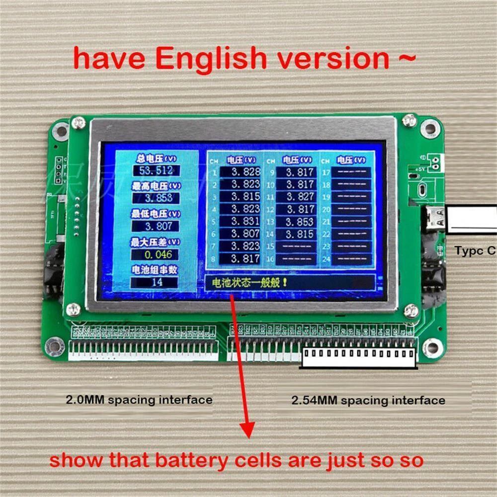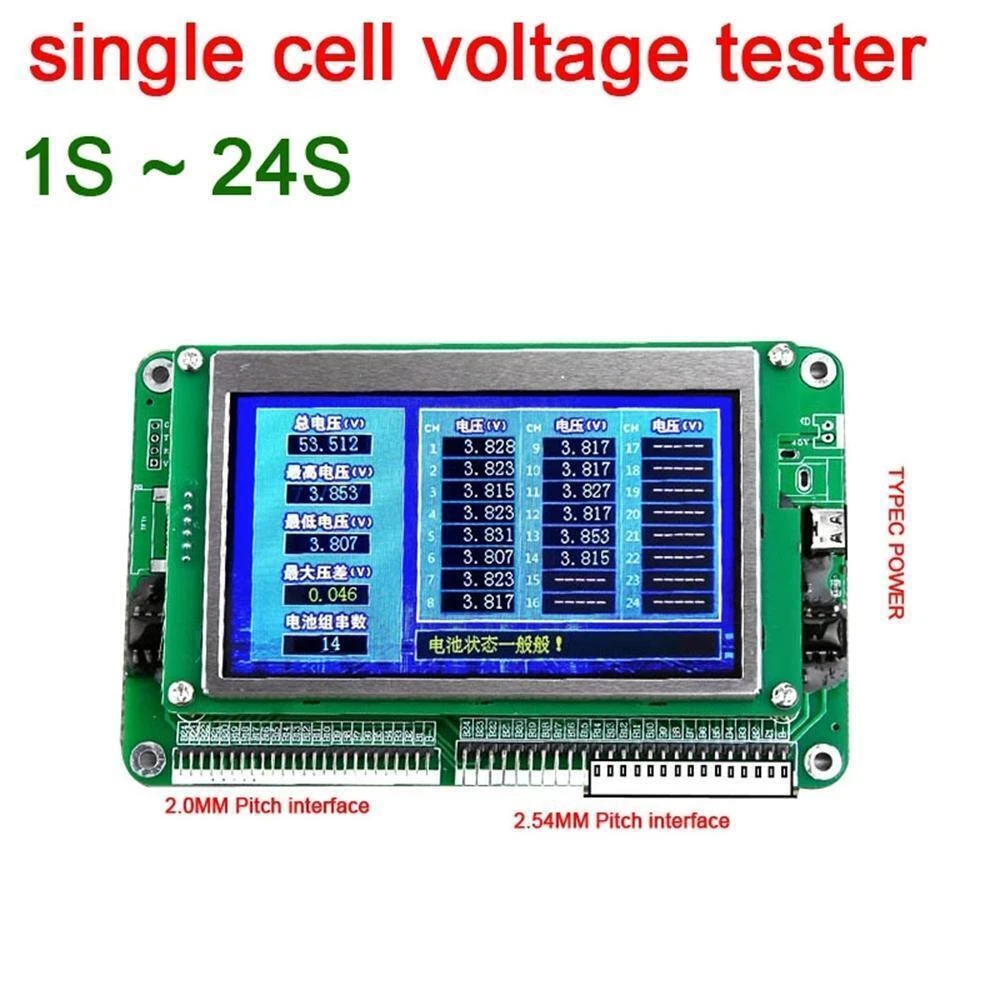 SAFE & SECURE SHOPPING 100% SATISFACTION GUARANTEED FAST SHIPPING 1S-24S Li-ion Lifepo4 Battery Pack Single Cell Series String Voltage Tester ASUS Product Description Features: 1. Support negative pressure display. 2. Single series range 0.4V-9V. 3. Measurement accuracy 0.05%±3MV. 4. Support for mixed insertion (without starting with B-). 5. Automatically identify the number of battery strings. 6. Display the highest voltage, the lowest voltage, and the maximum differential pressure between strings. 7. TypeC port power supply. 8. Color LCD display with 1 to 24 string battery pack measurement. Product parameters Weight : 85g Size : 140.7*87.6mm Be applicable: 2 strings - 24 strings Direction for use Connect the TypeC power port to the power supply, and then select the detection port according to its own interface, and then you can check whether the voltage difference is normal. Matters needing attention Please follow the instructions to insert the meter, the connector and cable sequence can not be wrong. Package includes: 1*1S ~ 24S lithium battery pack single cell voltage tester 1*DC power cable OR 1*1S ~ 24S lithium battery pack single cell voltage tester 1*DC power cable 1*Expansion Board Payment Shipping Returns Contact US Payment Payment must be completed within 5 days. If you have any problems about payment, please contact us via ebay message. Shipping We only ship to confirmed ebay Order addresses. Please comfirm that your Order address is in line with your shipping address. Please kindly note that the combined shipping is not provided because the shipping fee is calculated by weight. Also, the each additional item means exactly the the same color and size. It takes about 7-15 working days to US; about 10-30 working days to other countries. Transit time may be a little delayed because of the bad weather and customs inspection. If you do not receive your item within 30 working days since payment finished, please contact us immediately for further assistance. Returns Items can be returned for exchange or refund within 30 days from the date you receive your merchandise. We are not responsible for any purchase after this 30-day period. Return shipping is the responsibility of buyer unless the return is a result of our mistake (i.e., your receive the wrong item). We will pay for shipping replacement back to you if an exchange is requested. Contact US Customer satisfaction is very important to us and our feedback rating reflects this satisfaction. If you have any questions, Our customer service staffs welcome feel free to contact us by EBAY message box. We strive to answer all questions and resolve any problems as quickly as possible. Copyright © 2022 Tongtool On Dec 26, 2024 at 03:54:08 PST, seller added the following information: