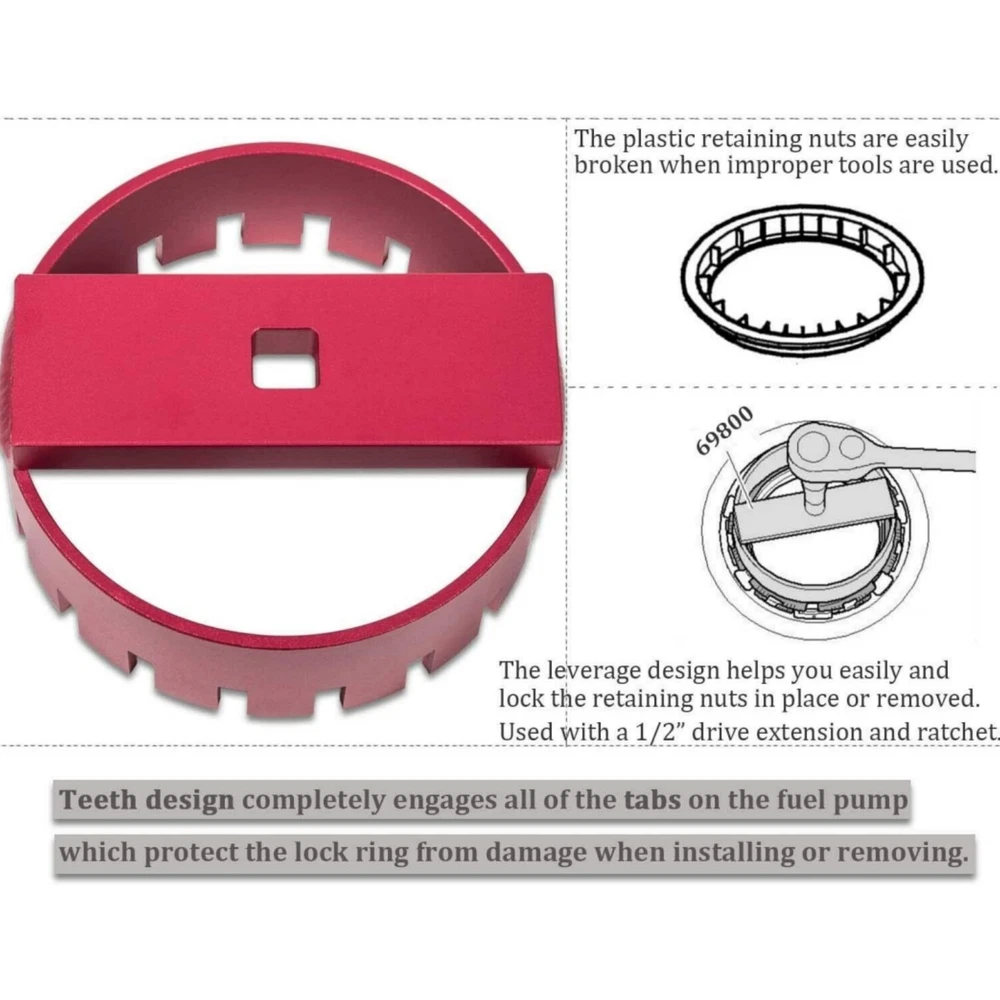This fuel pump socket is a lifesaver for Volvo owners! The high-quality aluminum construction feels sturdy and durable, with a rust-resistant finish that holds up over time. The teeth grip the lock ring perfectly, preventing damage while making removal and installation a breeze—no need to drop the fuel tank. Works flawlessly on S60, S80, V70, XC70, and XC90 models. A must-have tool for DIY repairs!