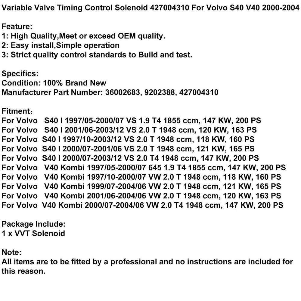 Big Block Oil Filter Insert Adapter BBF 429 460 385 series 400M for Ford 13.65 USD Free shipping Small Block Oil Filter Insert Adapter SBF 5.0 302 351 F1AZ-6890-B for Ford 12.65 USD Free shipping Alignment Dowel Pin for Chevy LS Engine to Transmission Extended Length 1.875" S 19.65 USD Free shipping Timing Chain Tensioner 11318685091 Fit For BMW E87 E88 E46 E90 2000-2016 USA 26.65 USD Free shipping Fuel Check Valve Regulator 23516919 for Detroit Diesel Series 60 Engines 12.7L 30.65 USD Free shipping Knock Sensor Relocation Brackets for GM LS Gen 3 Engines LS1 LM7 LR4 LQ4 LS6L59 26.65 USD Free shipping Product Description Exhaust camshaft solenoid valve 427004310 9202388 For Volvo S40 V40 1999-2004 F8 Variable Valve Timing Control Solenoid 427004310 For Volvo S40 V40 2000-2004 Feature: 1: High Quality,Meet or exceed OEM quality. 2: Easy install,Simple operation 3: Strict quality control standards to Build and test. Specifics: Condition: 100% Brand New Manufacturer Part Number: 36002683, 9202388, 427004310 Fitment: For Volvo S40 I 1997/05-2000/07 VS 1.9 T4 1855 ccm, 147 KW, 200 PS For Volvo S40 I 2001/06-2003/12 VS 2.0 T 1948 ccm, 120 KW, 163 PS For Volvo S40 I 1997/10-2003/12 VS 2.0 T 1948 ccm, 118 KW, 160 PS For Volvo S40 I 2000/07-2001/06 VS 2.0 T 1948 ccm, 121 KW, 165 PS For Volvo S40 I 2000/07-2003/12 VS 2.0 T4 1948 ccm, 147 KW, 200 PS For Volvo V40 Kombi 1997/05-2000/07 645 1.9 T4 1855 ccm, 147 KW, 200 PS For Volvo V40 Kombi 1997/10-2000/07 VW 2.0 T 1948 ccm, 118 KW, 160 PS For Volvo V40 Kombi 1999/07-2004/06 VW 2.0 T 1948 ccm, 121 KW, 165 PS For Volvo V40 Kombi 2001/06-2004/06 VW 2.0 T 1948 ccm, 120 KW, 163 PS For Volvo V40 Kombi 2000/07-2004/06 VW 2.0 T4 1948 ccm, 147 KW, 200 PS Package Include: 1 x VVT Solenoid Note: All items are to be fitted by a professional and no instructions are included for this reason. About Us Bruce & Shark is a company Focus on Motorcycle parts more than 11 years. The design inspiration comes from the awe of the vast sea and worship of the fighting sharks, therefore Bruce & Shark takes a shark as brand logo. Since its inception, we have always put the "customer first" and "top quality" as our principle. We specialized in selling Motorcycle parts and providing customers with various types of high-quality products. Our brand Bruce & Shark has enjoyed good reputation in America, Europe, Japan, Canada and Africa, covering more than 30 countries. Our vision is to deliver high-quality Motorcycle parts products and sincere services to the world. Our main products are motorcycle mounted, fuel pump, stator, windshield, Seat Cover, motorcycle fairing. Welcome to our shop to choose products that are worth more for your Motorcycle! Please Add me to your list of favorite sellers and visit often. Thank you for your business. Shipping United States Buyers Parcel will send via USPS or UPS or FedEx from our United States Warehouse. Shipping Time Usually parcel will be delivered 2-7 working days include handling time. Sometimes shipping time may has a little delay, such as Bad weather, Holidays. Terms We stand behind everything that we sell and will do everything possible to assure you are satisfied. When you receive your purchase if you are not 100% satisfied, please sent me ebay message and we will do our best to make you happy. If you still want to return your purchase, simply ship the item(s) back to us and we will refund your original purchase price and the original shipping charge. Buyers are responsible for the postal cost of returning the items. We must be notified of the intent to return your item within 30 days of receiving the item. Items returned must be in the same condition that they were received. How to return 1,Please ask us for return address . 2,Shipping back the package . The RMA#(Return Merchant Authorization Number = Your ebay ID) must be clearly written on the return package ,Otherwise the package will be refused. 3,Sent us the return tracking number. 4,All returns will be inspected prior to a credit being issued. Contact Us Send us ebay message in English If you have any questions, our Customer Service staffs welcome you to sent me ebay message. We strive to answer all questions and resolve any problems as quickly as possible. Business Hours: HongKong Time GMT+8:00 Monday-Saturday 9:00-17:00 Air Filter Element for Yamaha XT 225 Serow XT225 TTR225 86-07 1KH-14451-00-00 U9 11.65 USD Free shipping CNC Black Bar End Caps for Bonneville Street Twin T100 T120 2016-2020 20.65 USD Free shipping 2lb Nitrous Bottle Bracket 2.5 2 Two Pound 4-3/8" Bottle Diameter Tank Mount 26.65 USD Free shipping Fuel Pump 16700-K26-305 16700-K26-902 Replace For Honda Msx125 Grom 125 13-16 51.92 USD 54.65 USD Free shipping 5% off Carbon ABS Radiator Panel frame Fairing For Suzuki GSX-S 1000 2015-2020 US 142.65 USD Free shipping Rear Seat Passenger Cushion Flat Pu Black Fit For Yamaha Yzf-R7 21-22 R1 15-22 67.12 USD 70.65 USD Free shipping 5% off Copyright © Bruce&Shark All rights reserved Big Block Oil Filter Insert Adapter BBF 429 460 385 series 400M for Ford 13.65 USD Free shipping Small Block Oil Filter Insert Adapter SBF 5.0 302 351 F1AZ-6890-B for Ford 12.65 USD Free shipping Alignment Dowel Pin for Chevy LS Engine to Transmission Extended Length 1.875" S 19.65 USD Free shipping Timing Chain Tensioner 11318685091 Fit For BMW E87 E88 E46 E90 2000-2016 USA 26.65 USD Free shipping Fuel Check Valve Regulator 23516919 for Detroit Diesel Series 60 Engines 12.7L 30.65 USD Free shipping Knock Sensor Relocation Brackets for GM LS Gen 3 Engines LS1 LM7 LR4 LQ4 LS6L59 26.65 USD Free shipping