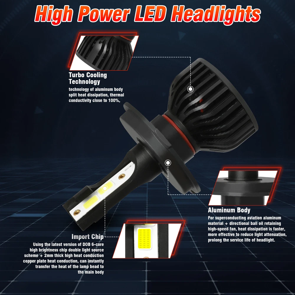 Car Light Bulb GJ Series Bulb HK Series Bulb BY Series Bulb C6 Series Bulb C9 Series Bulb S1 Series Bulb S2 Series Bulb F2 Series Bulb X7 4Side Series Bulb K9 4Side Series Bulb X15 4Side Series Bulb HID Series Bulb Other Type Bulb(Fog...etc) V5 4Side Series Bulb DF Series Bulb 6 Side Series Bulb Z4 Series Bulb LX Series Bulb DSX Series Bulb K9L 4Side Series Bulb LED Light Strip Work Light Bar Protection Sticker Car Interior/Exterior Trim Tool Promotion Other Item Description 。 5-3/4"5.75 Round Stock Style H4 Conversion Headlights with Super Bright White LED Light Bulbs. - This listing is for a new set of 5 3/4" stock style glass lens - metal back headlight bulbs. This set includes (4) low/high beam headlights with high intensity LED light bulbs (no wiring or bucket modification needed). - These have the original shaped prongs on the back so they will plug right into your original wiring harness plugs. - These will fit any car or truck that has 4 round glass headlights. Will fit into stock buckets. Each bulb is 5 3/4 inches in diameter. -These are glass and we will take extra care in packaging. 5.75" Headlight Housing Specifications: -Dimension: 5.75 inch -Housing Color:Black -Material: Aluminum Housing, PMMA Lens -Working Temperature: -40°C- 85°C -Waterproof Protection: IP67 -Interchange: H5009 / H5006 / H5506 / H5001 / 4001 -100% Brand New in the box with manufacturer packaging, never been installed before. 9003/H4 LED Headlight Bulbs Specifications: -Light Source: DOB LED Chips -Color temperature: 6000K Cool White -Material: Aluminum -Wattage: 50W -Lumen: 7000LM -Work Voltage(V): DC 12V -Waterproof Rate: IP67 -Viewing Angle(θ):360 degree -Operating temperature: -40~130℃ -Operating Life: >50000hrs -To Fit: High + Low Beam Headlights Parcel Content: -4PCS H4/9003 LED Headlight Bulbs -4PCS 5.75 inch Round Headlight Housing 。 Shipping Policy Payment Method Returns Policy Shipping Policy 1) Item Located in US , We will ship all orders asap from our USA warehouse, All shipment will ship by UPS or USPS.Not include small package which less than $5. 2) Item Located in China ,We will ship from China Warehouse.( No service on Weekend and public holidays). 3) We will ship out all orders as soon as possible after payment verified, please allow up to 1-4 business days for delivery. 4) Delivery time within the U.S. is usually just 3 to 6 business days, however in rare cases it could take 6 to 7 business days. Why Choose the US Stock? 1. Us Local Shipping, No Extra Customs Cost to the US. 2. Fast Delivery: 3-6 Working days Delivery. 3. Best After-Sales Service!!! Payment Method We accept PayPal only. Payment must be made within 4 days of auction closing. (Non-payment may result in a UPI
