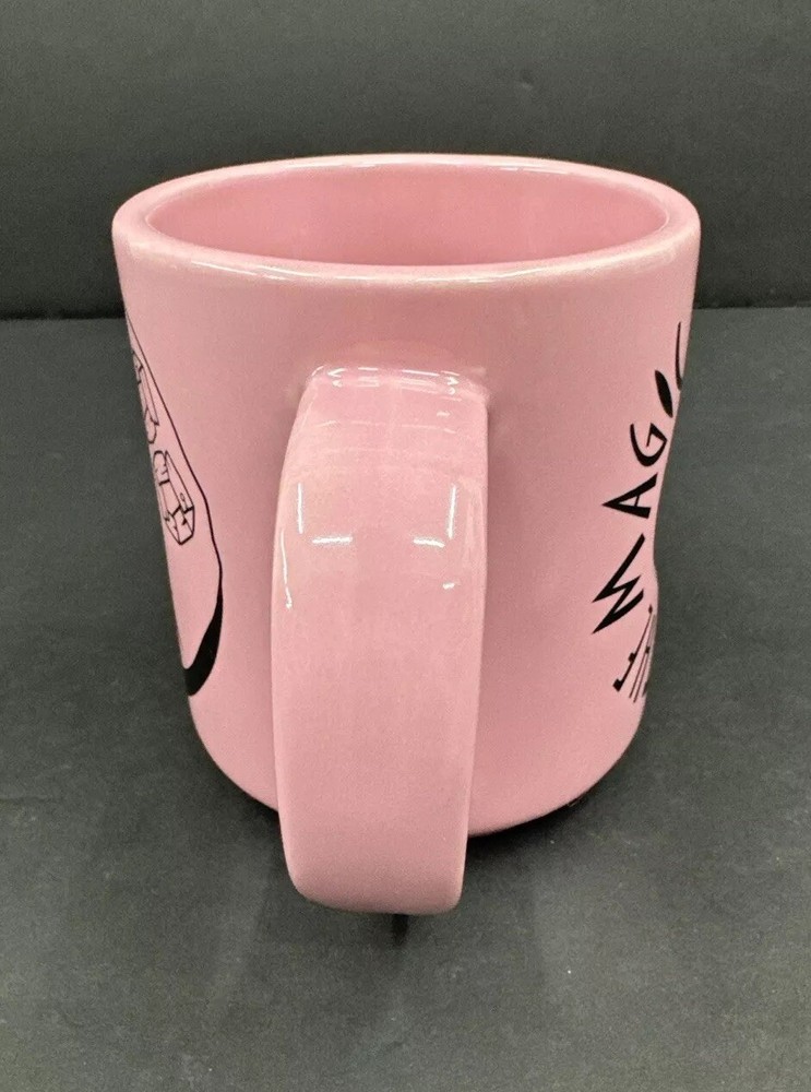 Enjoy your hot or cold beverage in style with this pink ceramic coffee mug featuring the magic hole character from Voodoo Doughnuts Portland OR. The mug is perfect for all occasions and comes with a solid color pattern. It is an original piece and not a licensed reproduction. The mug is made of high-quality ceramic and porcelain material and has a unique American style. The magic theme adds a touch of fun to your day. The mug is perfect for collectors and can be added to your collection of mugs, dinnerware, and serveware. It is a must-have for any Voodoo Doughnuts fan.