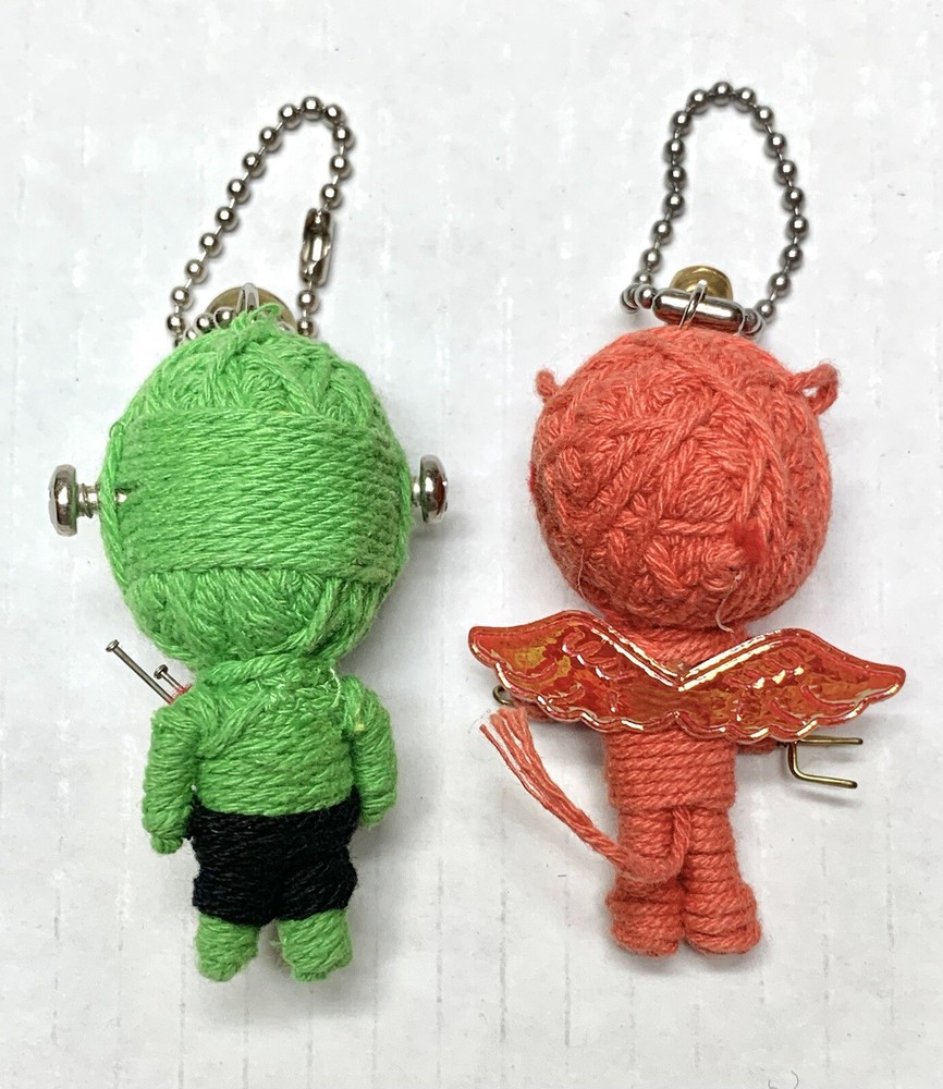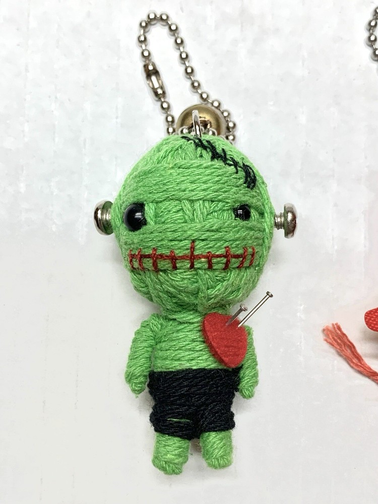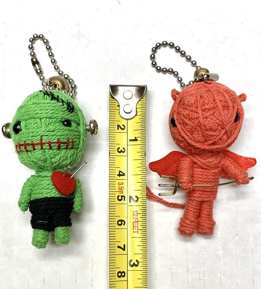 Add a touch of Halloween spirit to your keychain or backpack with this Voodoo Keychain Charm featuring Frankenstein and orange devil dolls. The charm is perfect for those who love unique and eye-catching accessories. The multicolor design is perfect for any outfit, and the theme of the charm is sure to make a statement. This keychain charm is a great addition to any collection and is perfect for everyday use or for special occasions. Get ready to turn heads and show off your Halloween spirit with this one-of-a-kind Voodoo Keychain Charm.