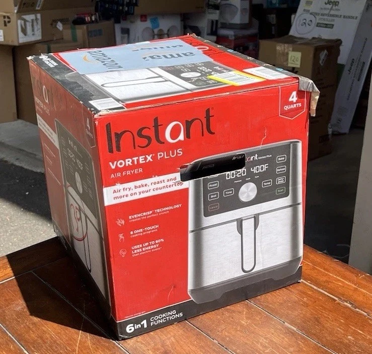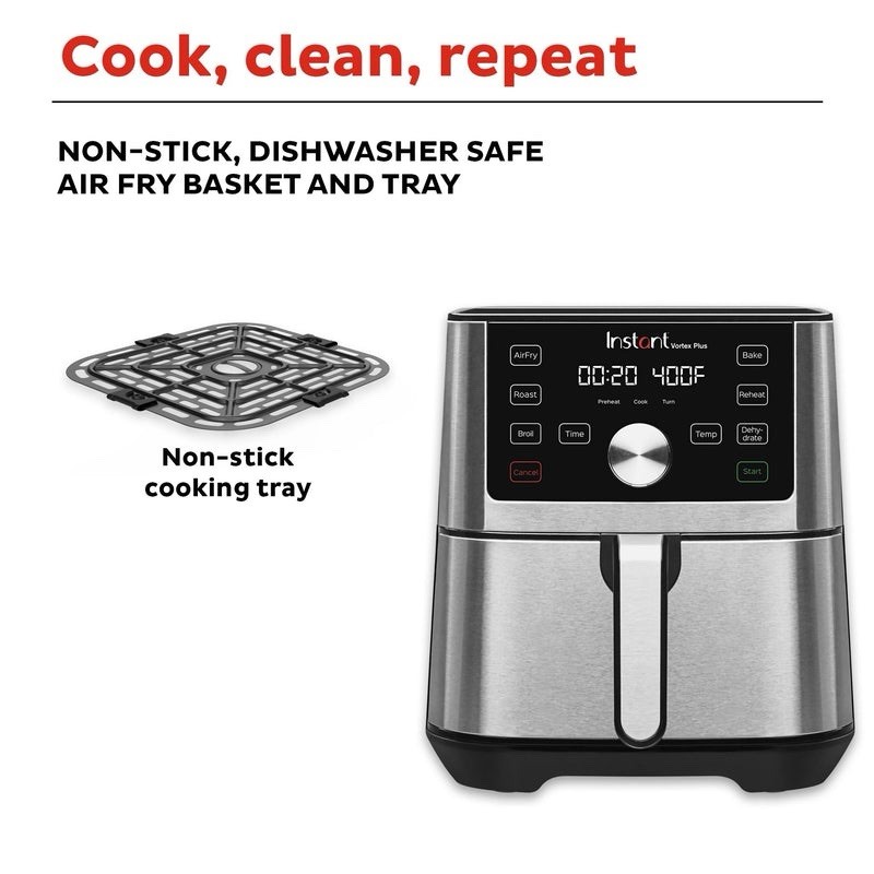 Item Weight: 9 lbs Inner Material: Stainless Steel Features: Programmable, Adjustable Temperature, Easy Clean, Easy to Use Display, Fast Preheating, One-Touch Smart Programs, Overheat Protection, Touchscreen Product Dimensions: 10.2"d X 13.03"w X 11.02"h Capacity: 4 Is Dishwasher Safe: Yes Power: 1600 W Batteries Required: No Control Method: Touch Number Of Pieces: 1 Output Wattage: 1600 Watts Material: Stainless Steel Number of Settings/Programs: Custom Program Options Included Components: Instant Vortex Plus 6-in-1 Basket Air Fryer, 4qt Wattage: 1600 Watts Minimum Temperature: 95°F Brand: Instant Pot Upc: 810028584327 Model: Air Fryer Assembly Required: No Maximum Temperature: 400°F Care Instructions: Dishwasher Safe Type: Air Fryer Controller Type: App Voltage: 110 V Color: Stainless Min Temperature Setting: 95 Degrees Fahrenheit Item Depth: 10.2 in Max Temperature Setting: 400 Degrees Fahrenheit Components Included: Unit, 4qt Special Feature: Programmable Has Nonstick Coating: Yes Power Source: Electric