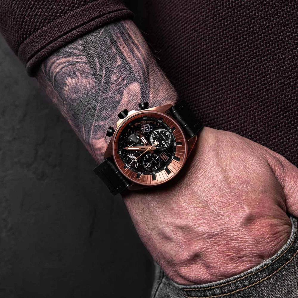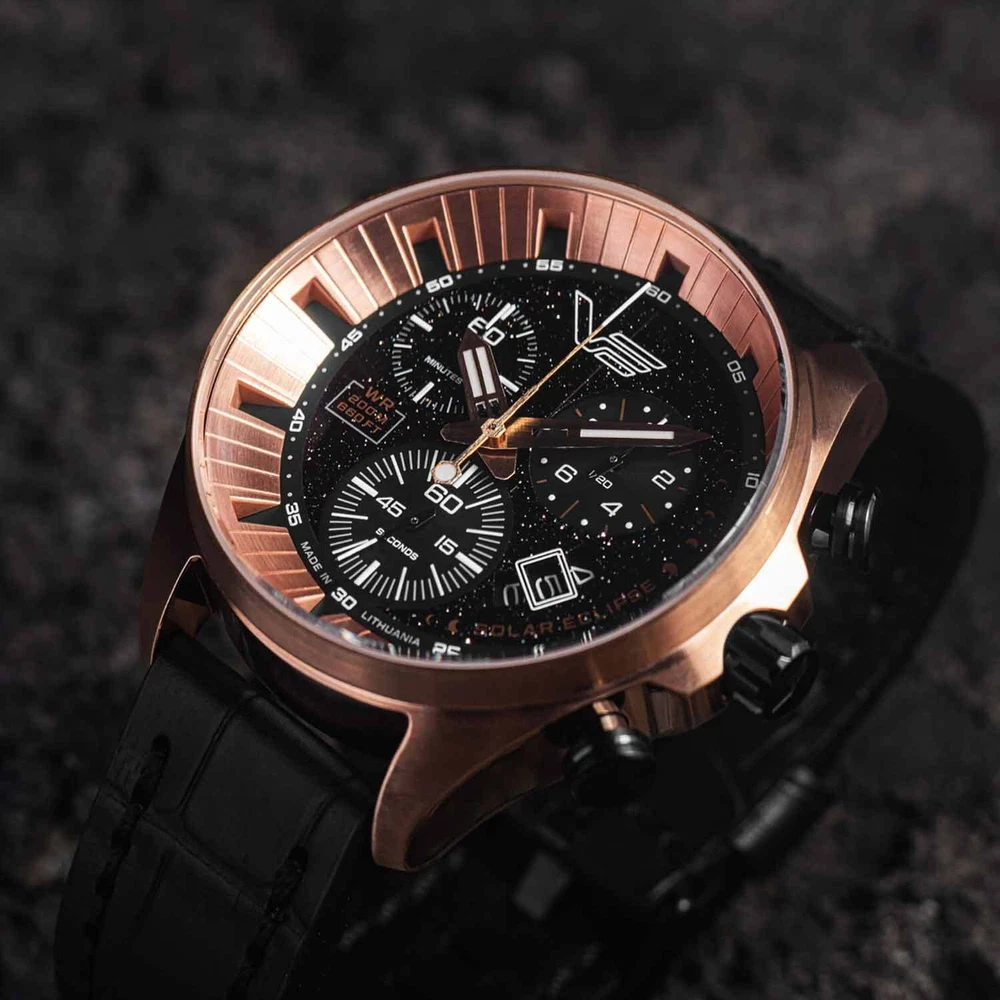 Vostok Europe Men's Watch Chronograph Solar Eclipse Black / Rosé Le 6S30-32