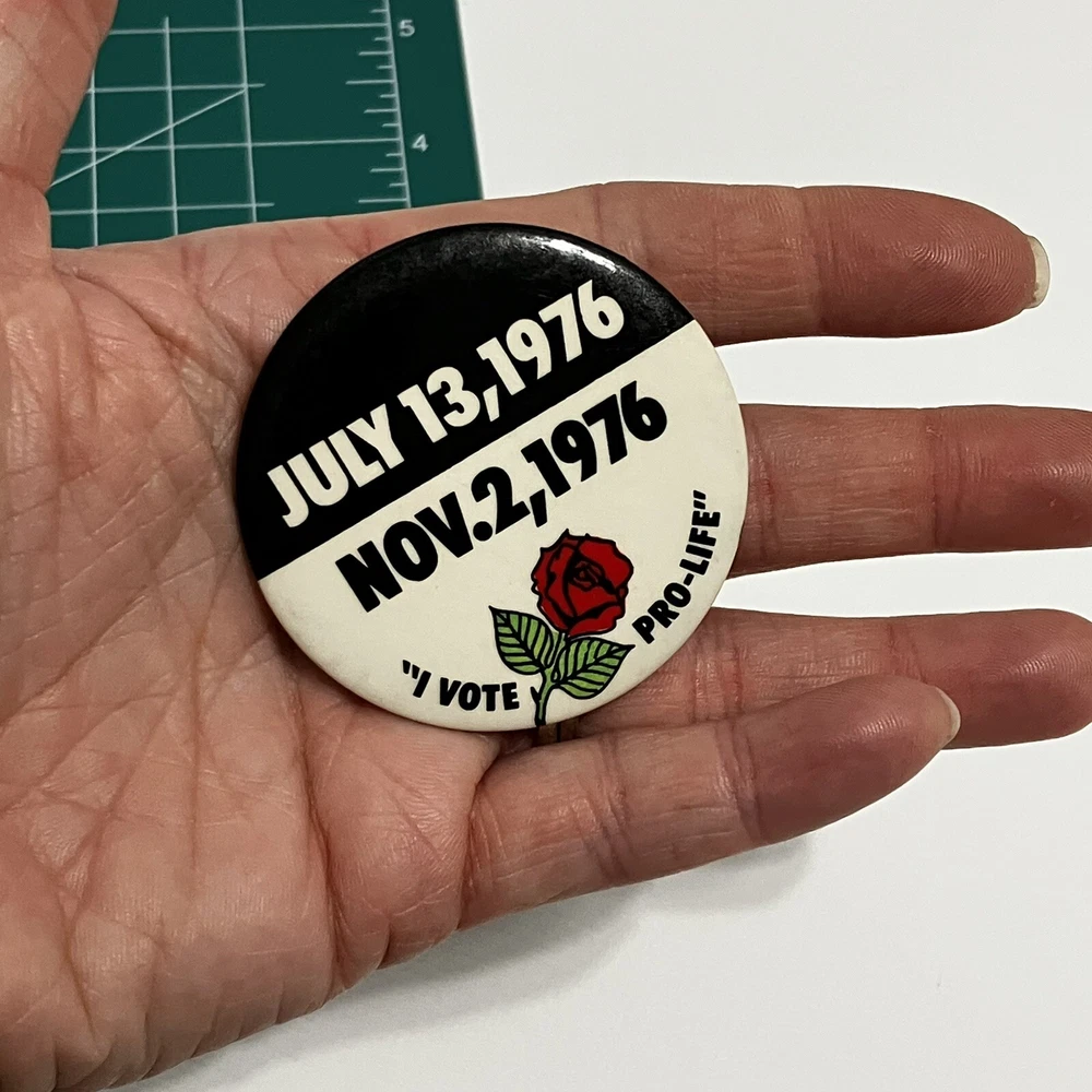 Vote Pro-Life Button Pin Red Rose 1976 Black White Badge Souvenir Vintage