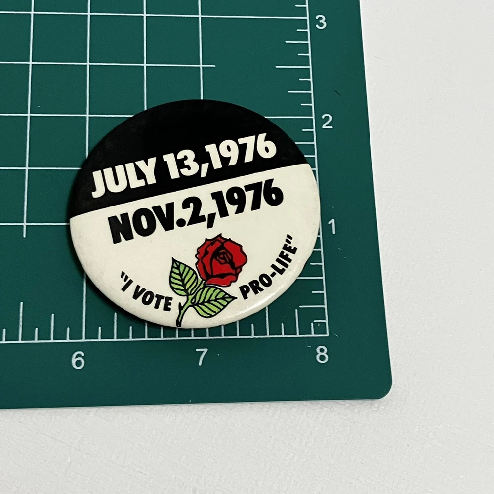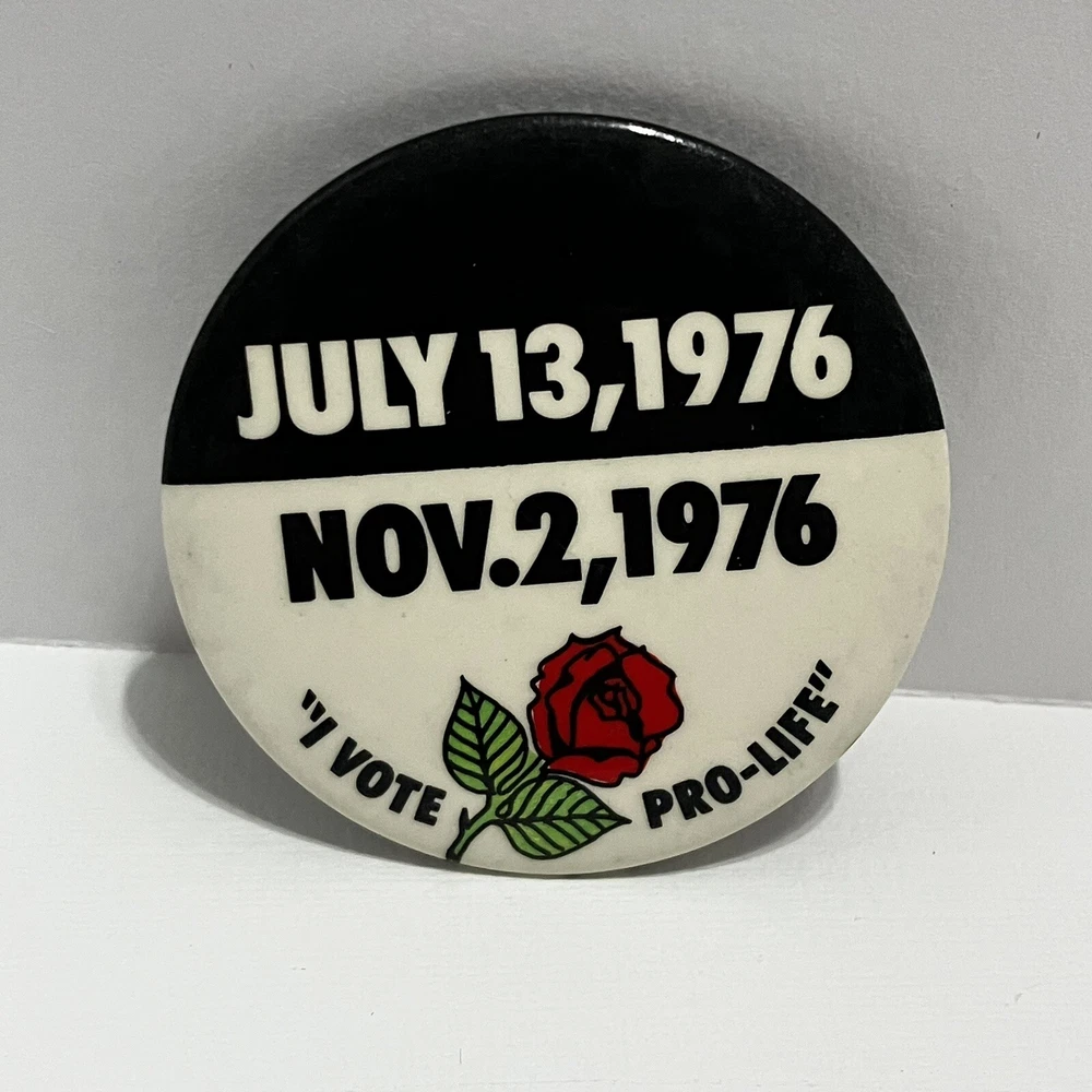 Vote Pro-Life Button Pin Red Rose 1976 Black White Badge Souvenir Vintage This pin came from a lifelong collection. It is in good gently used condition, totally functional with no major flaws, just condition that corresponds with its age. Please examine the photos carefully for details of wear and measurements. We are always happy to combine shipping whenever possible and accept returns for any reason. Cheers!