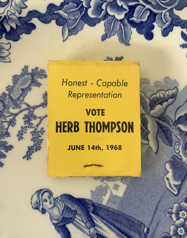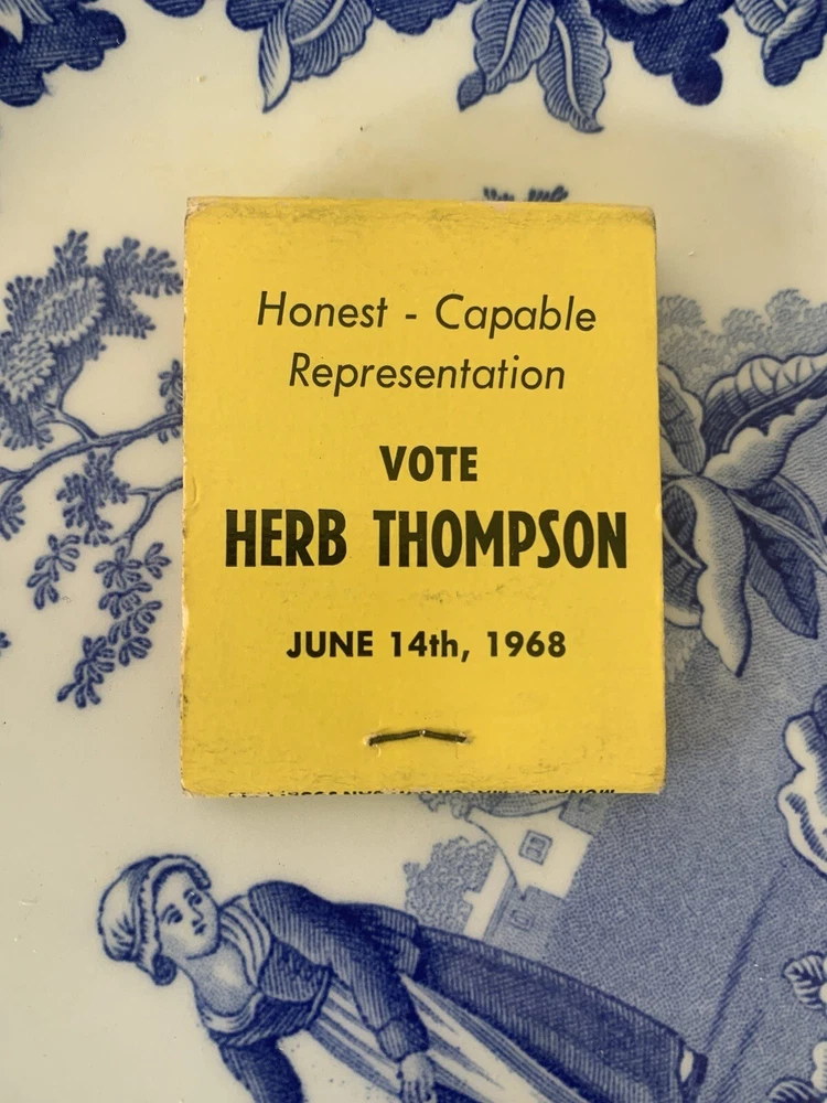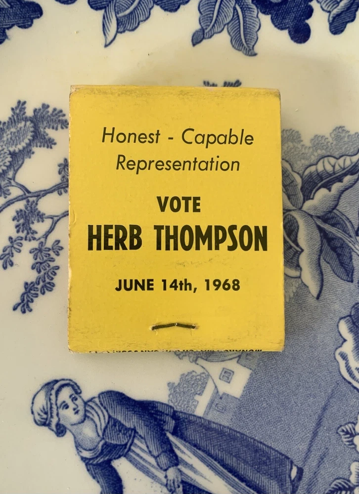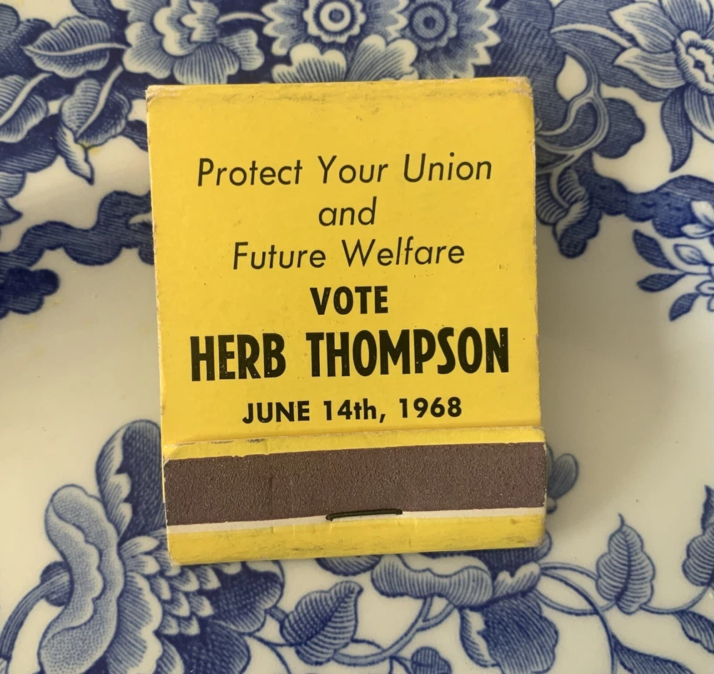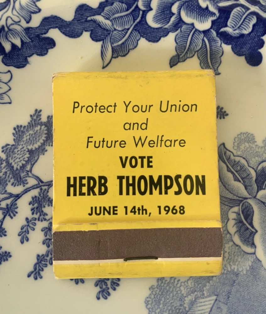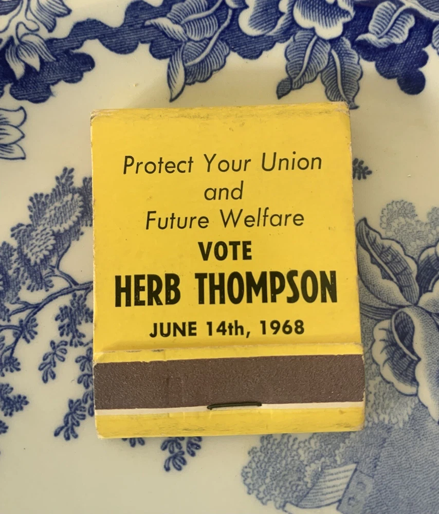 Vote for Herb Thompson 1968 Political Election Ad Matchbook Full / Unstruck