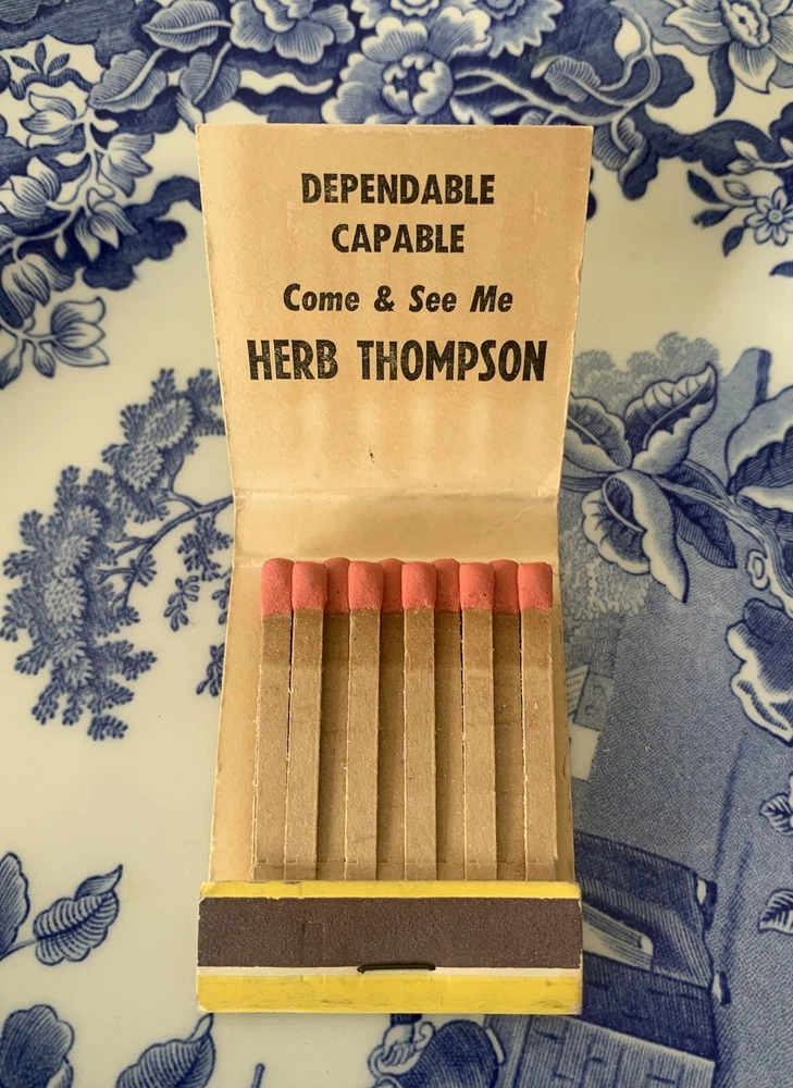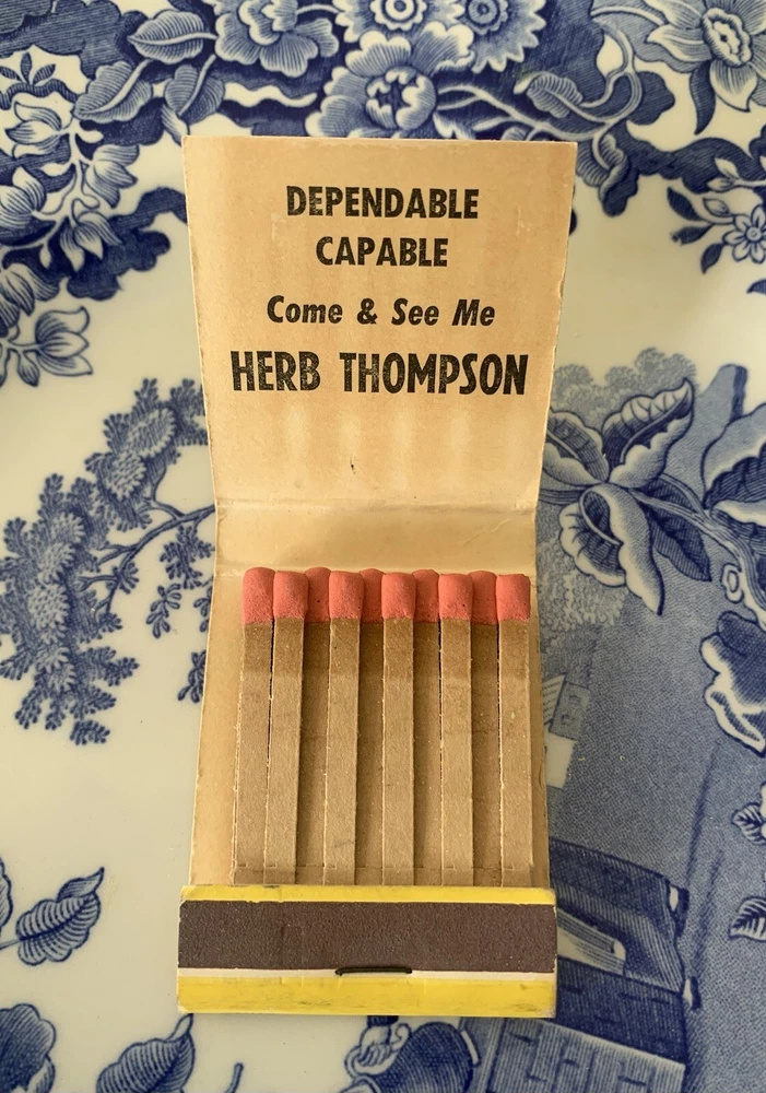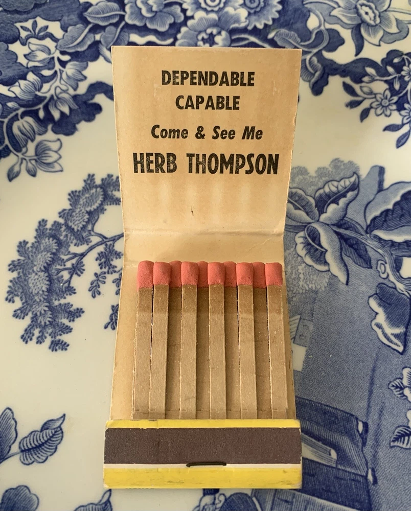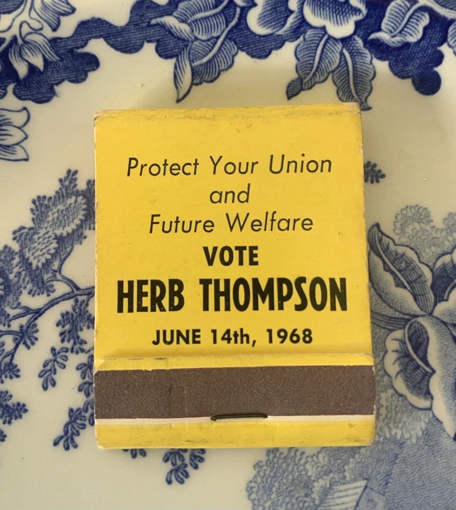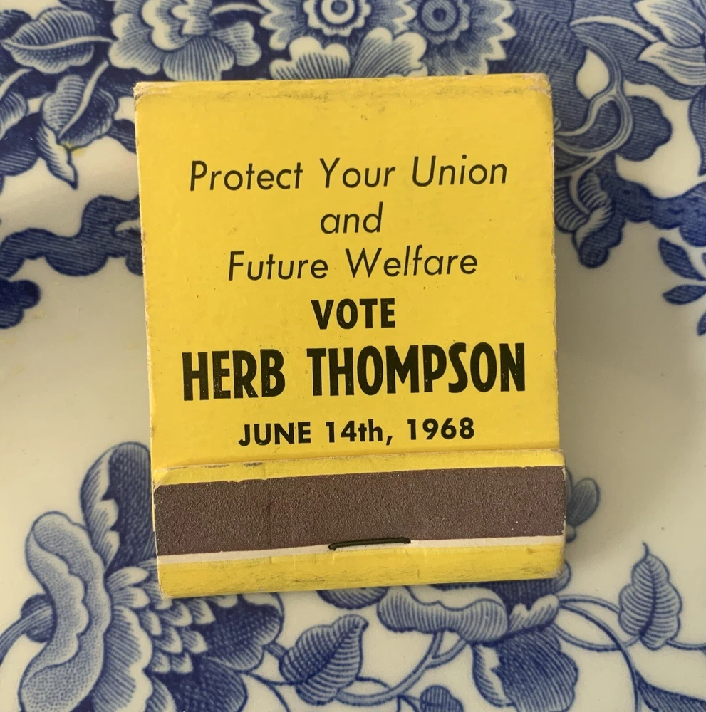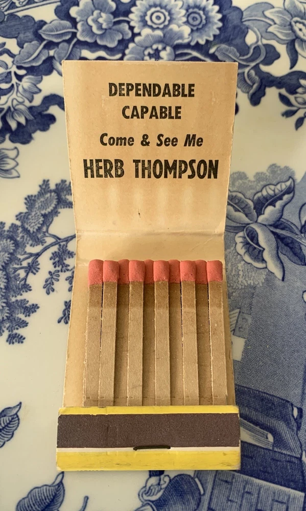 Vote for Herb Thompson 1968 Political Election Ad Matchbook Full / Unstruck