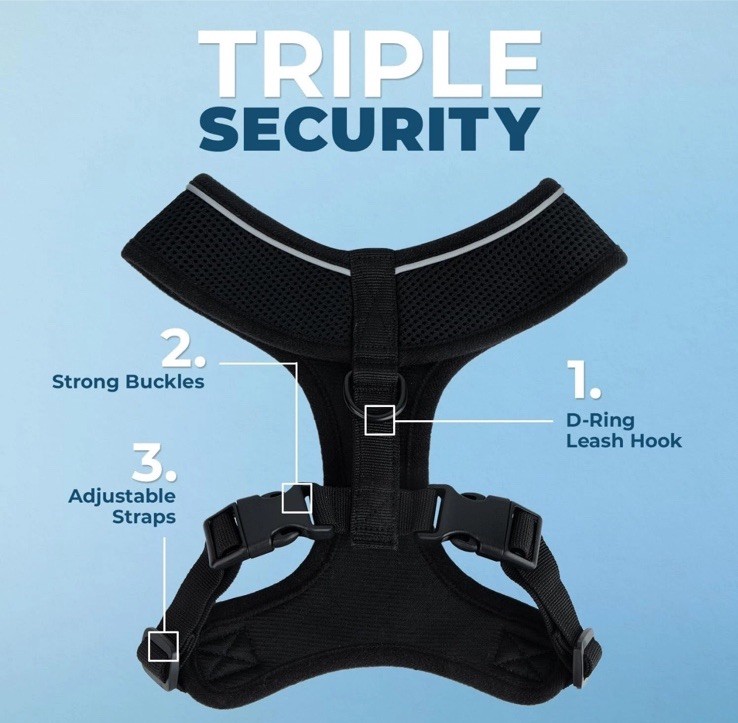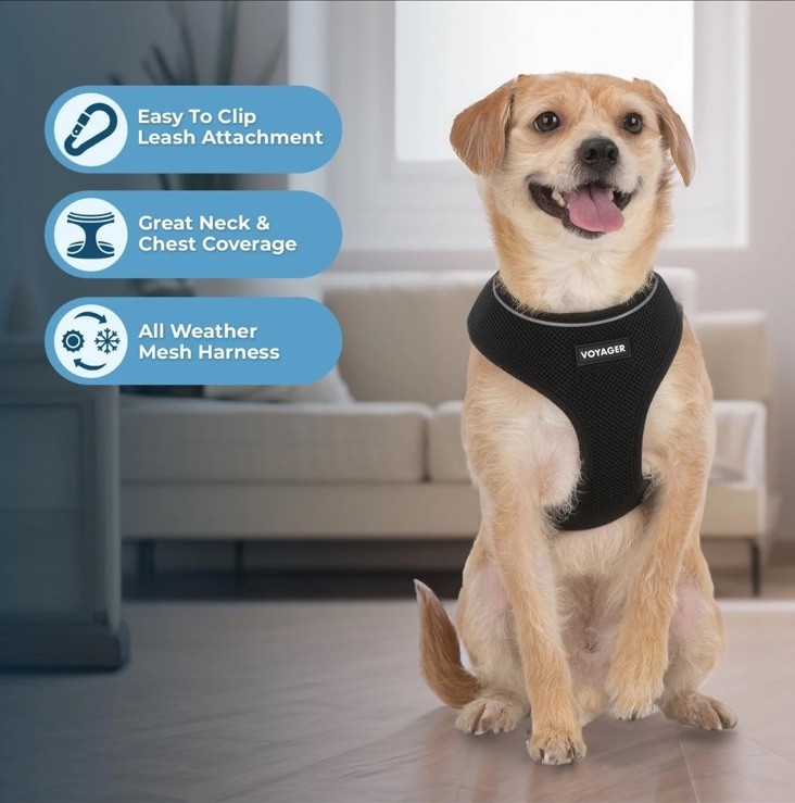 The Voyager Aerolite No-Pull Dog Harness in size Large is a reflective, adjustable harness designed to provide comfort and control for your dog. Made with durable materials sourced from China, this solid black harness features a buckle closure and is suitable for all life stages of dogs. Easy to clean with machine wash care instructions, this non-pull harness is perfect for outdoor activities and active dogs. With a focus on pet safety and comfort, this harness from Best Pet Supplies, LLC is a reliable choice for pet owners.