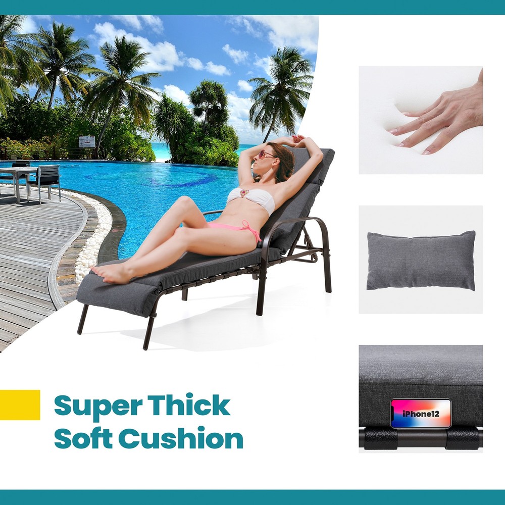 VredHom Adjustable Outdoor Chaise Lounge with Removable Cushion and Sturdy Design