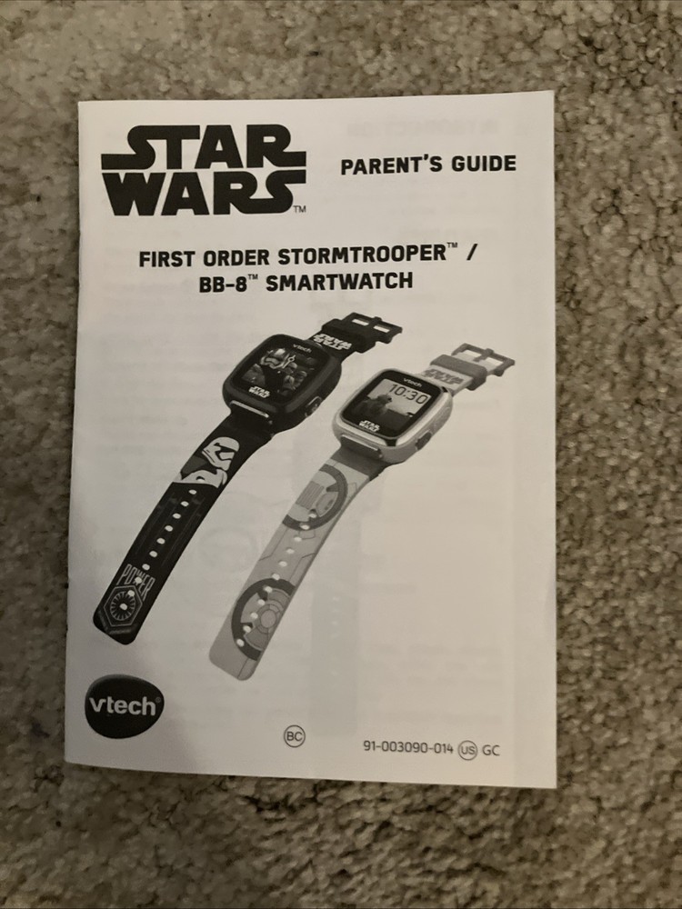 NO REFUNDS. WERE SORRY WE CAN'T REFUND. The pictures in the listing are pictures of the item you will get. This worked last time it was used. The Vtech Star Wars White Orange Smartwatch D5 is a fun and educational device for children ages 5-12. With a sleek white and orange design, this smartwatch allows kids to explore the world of Star Wars through interactive play and learning. It features a camera with a 320x240 video resolution, a lithium polymer battery, and a durable rubber band for comfortable wear. This US-sourced product is sure to delight young fans of the iconic franchise while also promoting STEM skills and creativity.