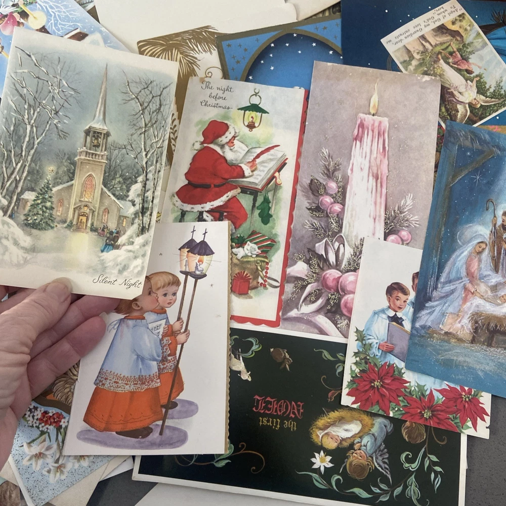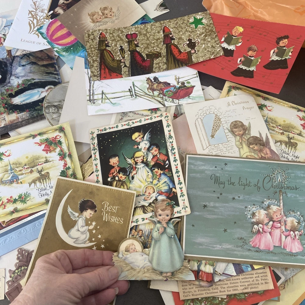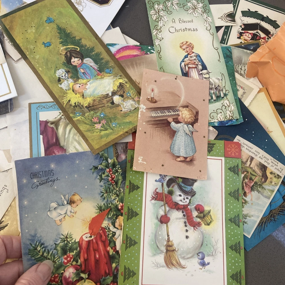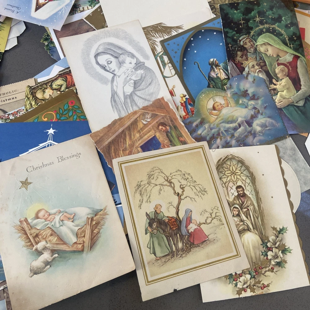 Guaranteed to be over 150 images, but I didn’t have time to count all of them. There are too many There are too many to take photos of, but I took a general sampling. Most of these are Christmas cards where the back has already been cut off. I’m assuming somebody was gonna do some sort of crafting with them. Some of them are images cut from old Bibles or newspaper clippings, but there are a lot of images to work with. This is a great bundle. See photos for a general sampling. This lot is sold as is.