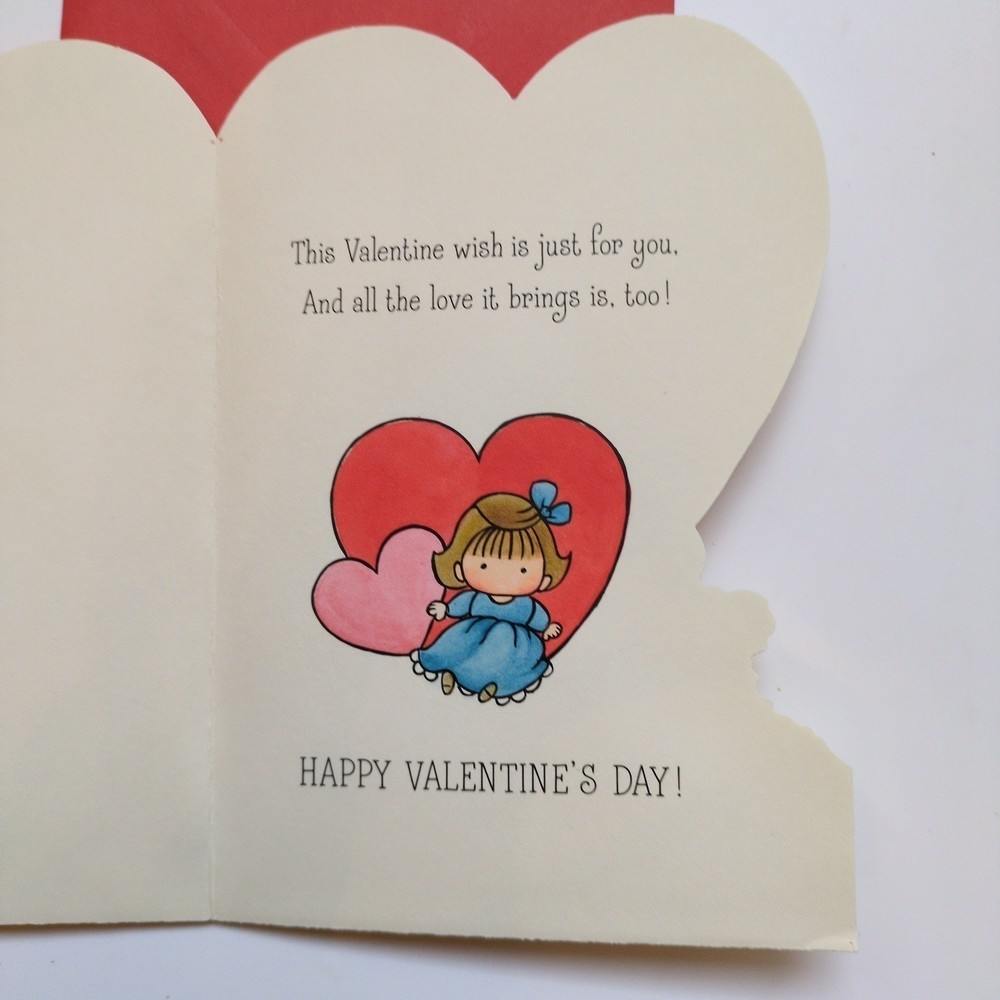 Vintage 1973 Hallmark Valentine's Day greeting card with red envelope. Features Joan Walsh Anglund artwork and sweet message inside. Condition: New, old stock. Has not been written in.